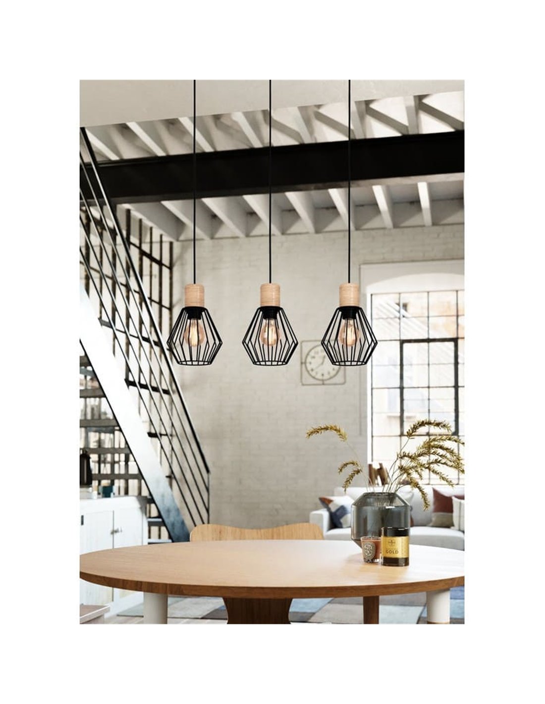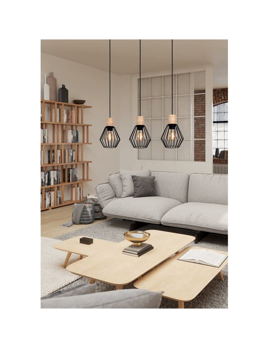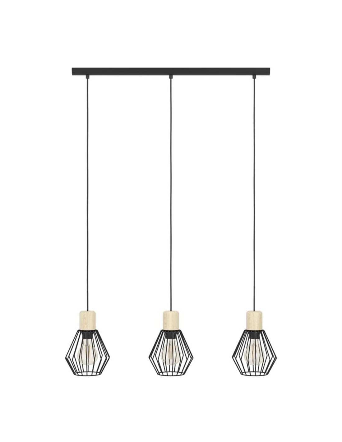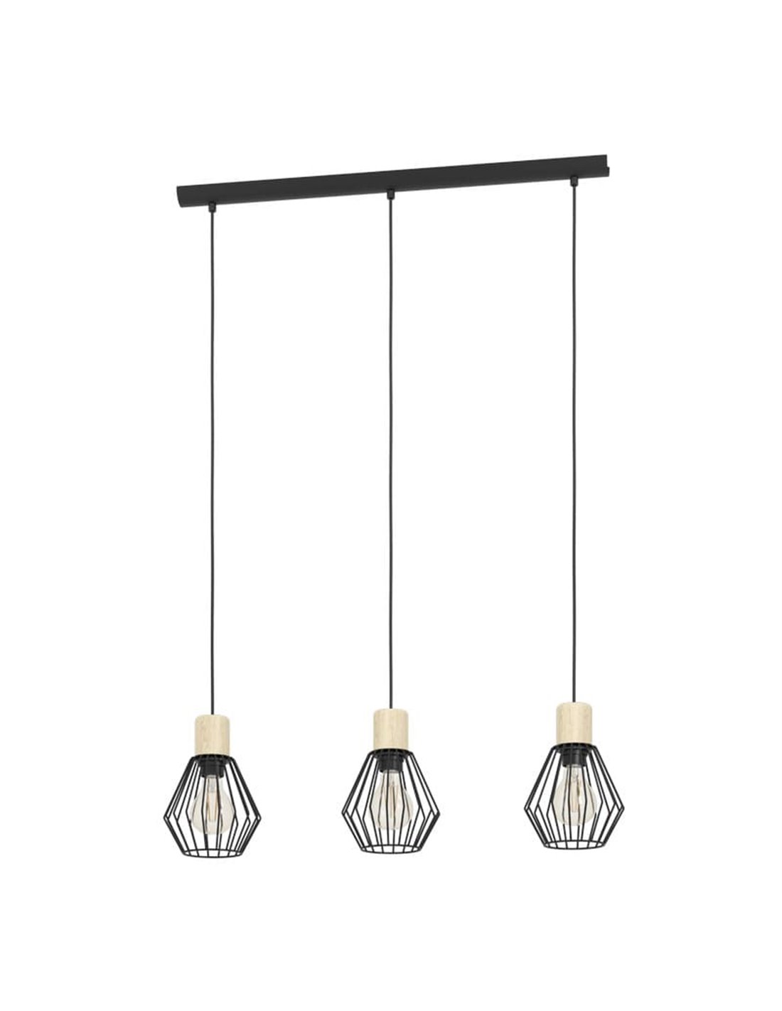 Hängelampe INDUSTRIAL MILLIGAN aus schwarzem Stahl mit 3 Schirmen, E27