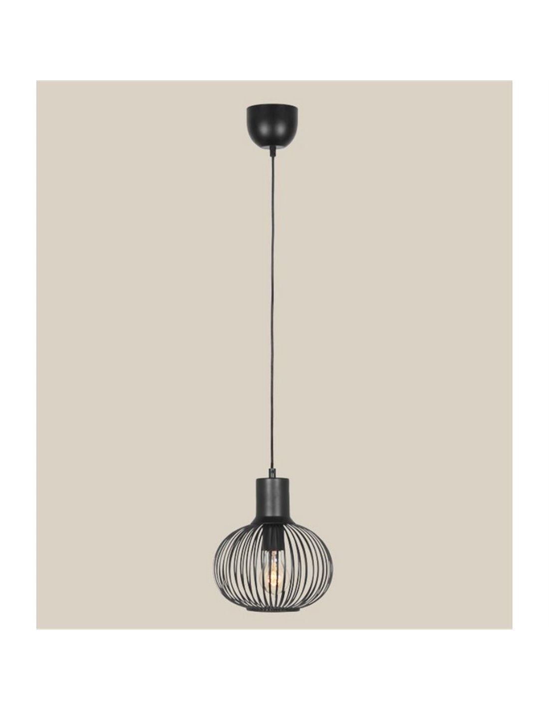 Die GILA Ø23cm ist eine Hängelampe, die Minimalismus und industriellen Charakter kombiniert. Ihr metallischer Schirm in mattem schwarzem Gitter lässt das Licht gleichmäßig durchscheinen und schafft eine warme und einladende Atmosphäre. Ideal für moderne oder Loft-inspirierte Innenräume, die nach dekorativer Beleuchtung mit Persönlichkeit suchen.