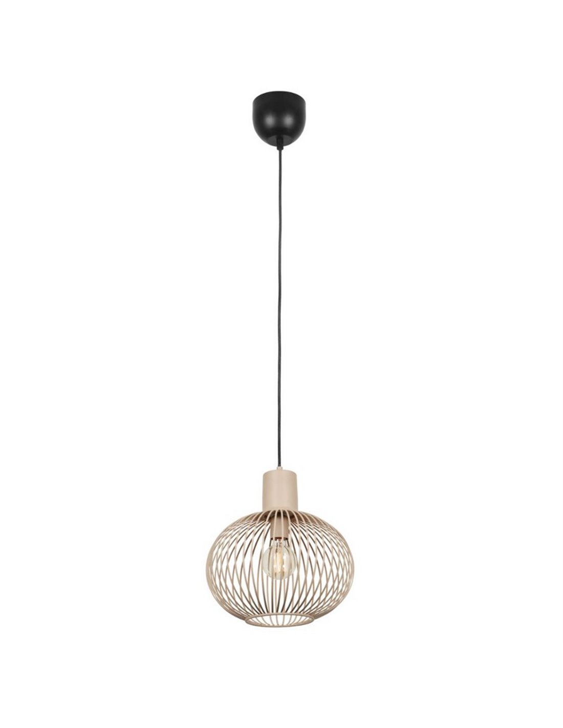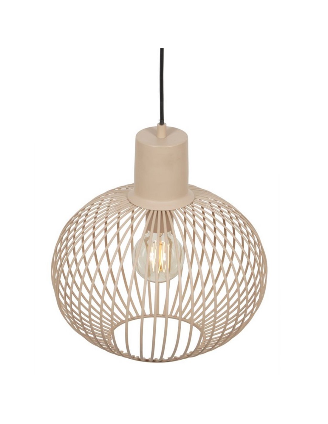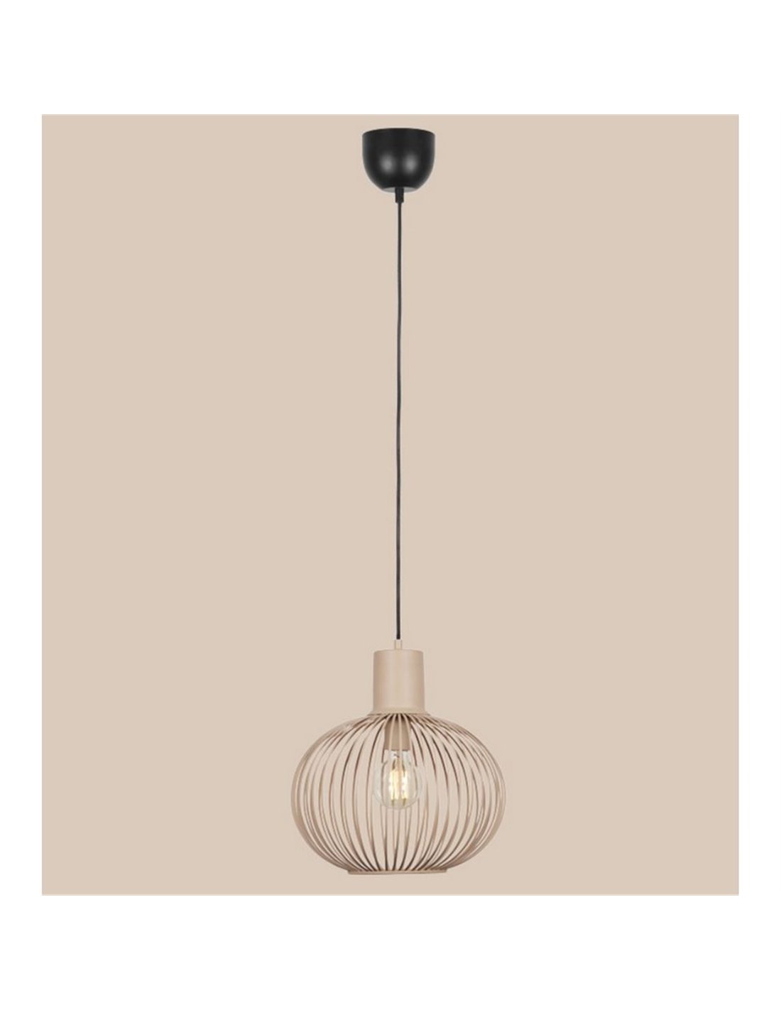 Vollständig aus Metall gefertigt, hebt sich diese Lampe durch ihre feingliedrige Gitterstruktur hervor, die die Glühbirne sichtbar macht und eine leichte industrielle Ästhetik schafft. Ihr beige Farbton harmoniert mit Boho-, nordischen oder minimalistischen Stilen und bringt ein Gleichgewicht zwischen Eleganz und visuellem Komfort.