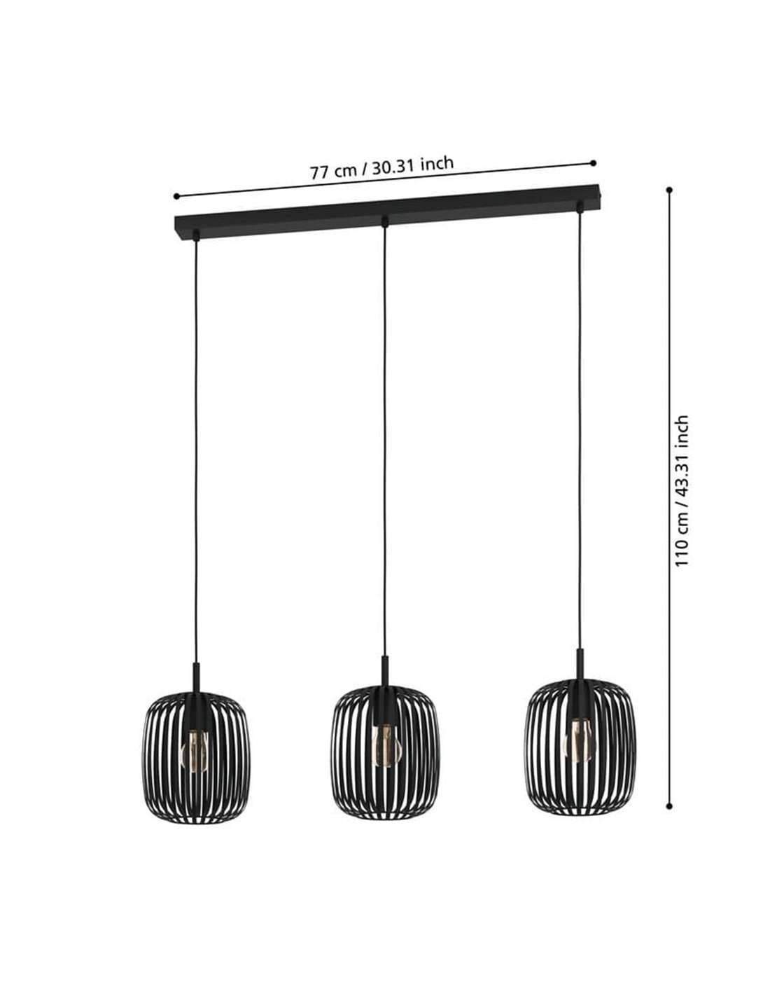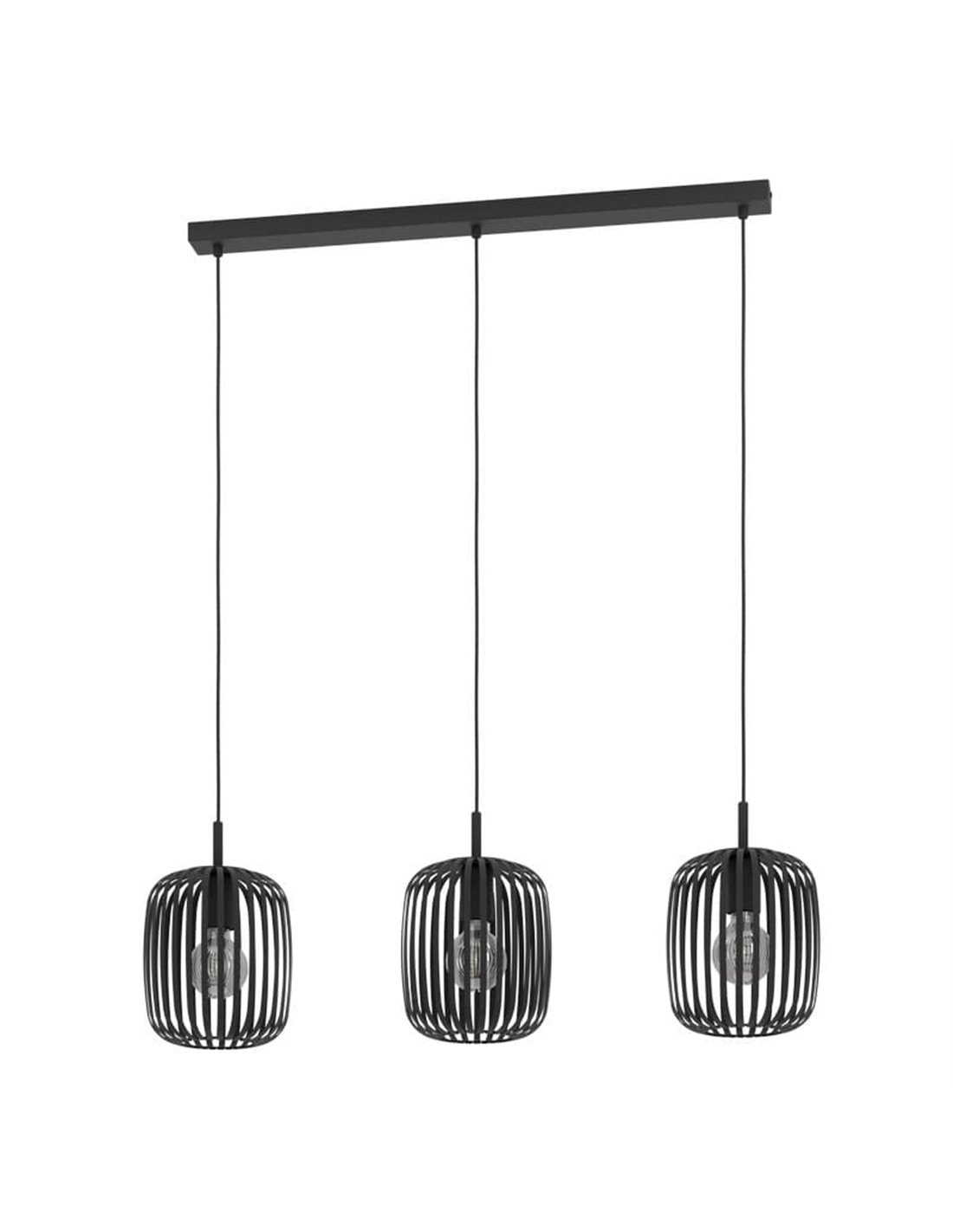 Hängelampe 3 Lichter ROMAZZINA von EGLO in schwarzem Finish, mit E27 für den Innenbereich. Abmessungen: ↕ 1100 mm | L 900 mm x B 200 mm.