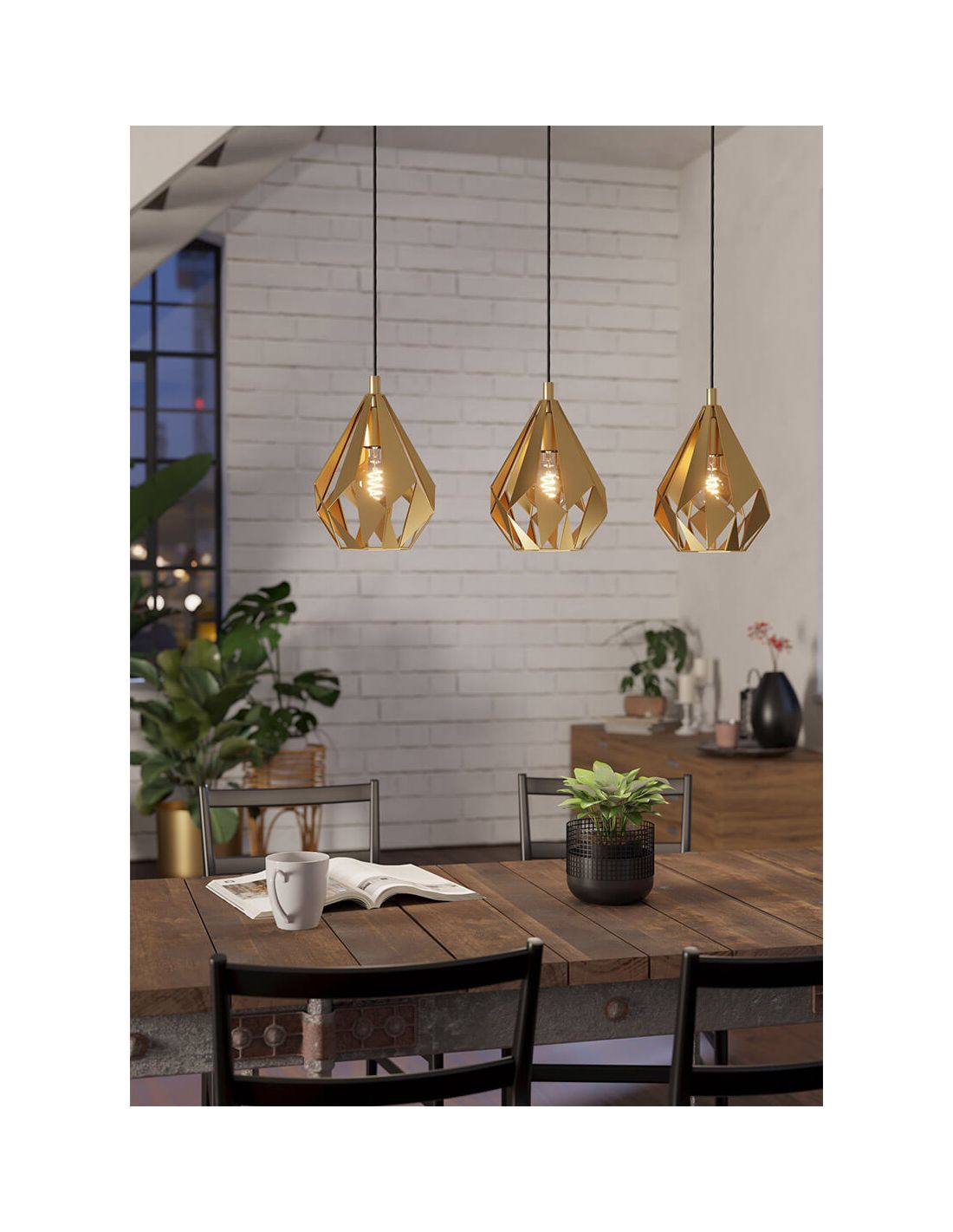 Die Carlton-Kollektion von Eglo Beleuchtung ist perfekt für Liebhaber moderner und Vintage-Dekorationen mit Lampen. Ihr goldener Abschluss ermöglicht es, jeden Raum oder kommerziellen Bereich mit modernen und Vintage-Möbeln zu dekorieren. Sie eignet sich hervorragend für Küchen, Esszimmer, Schlafzimmer sowie für Bars und Restaurants, ideal zur Beleuchtung von Tischen. Um ihr die Hauptrolle zu geben, können wir sie in einem Raum mit hellen Farbtönen installieren, obwohl sie perfekt zu allen Arten von Dekorationen passt.