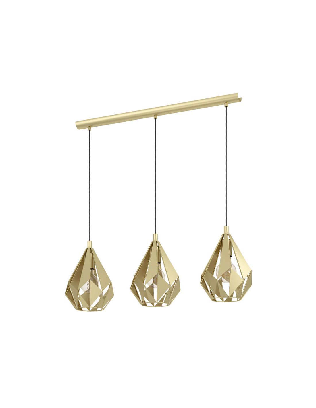 Diese Hängelampe mit 3 goldschirmen Carlton ist elegant und erfüllt zwei Funktionen: dekorativ und ansprechend. Sie verleiht Ihren Räumen einen Vintage-Touch und ist ideal zur Beleuchtung eines Tisches oder einer Kücheninsel.