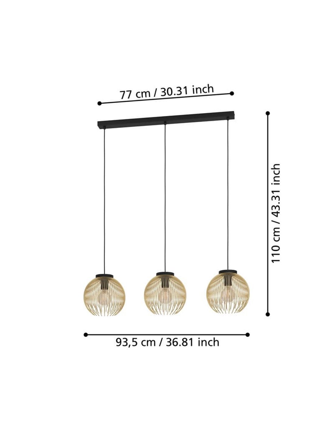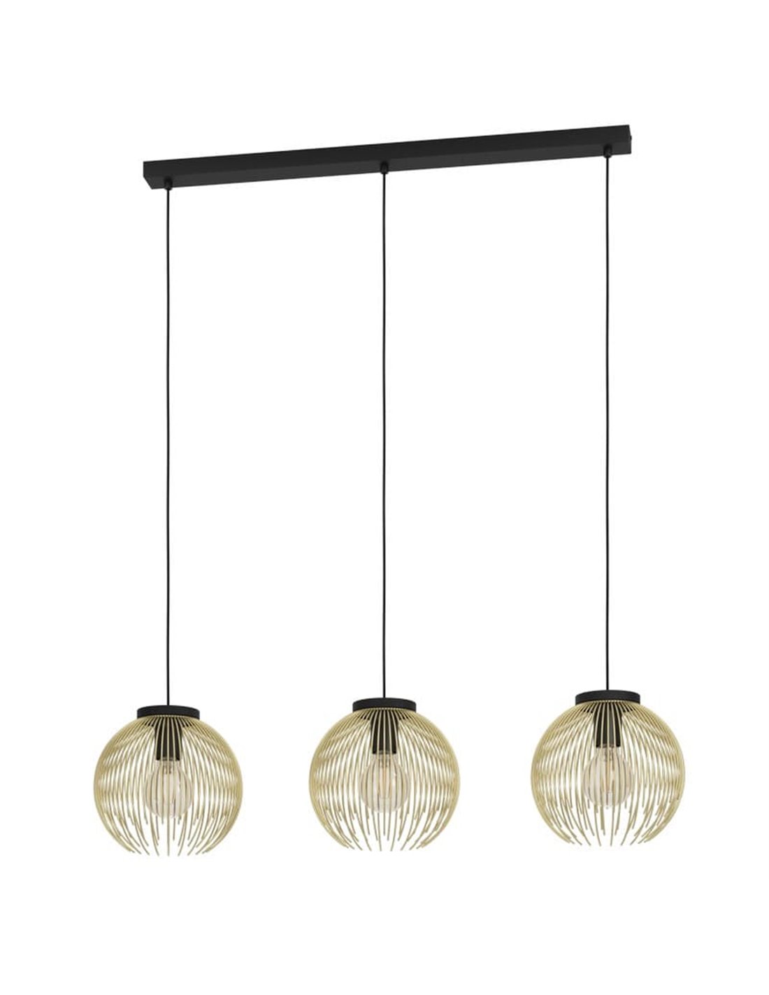 Hängelampe 3 Lichter VENEZUELA von EGLO in schwarz und gold, mit E27 für Innenräume. Abmessungen: ↕ 1100 mm | L 935 mm x B 235 mm.