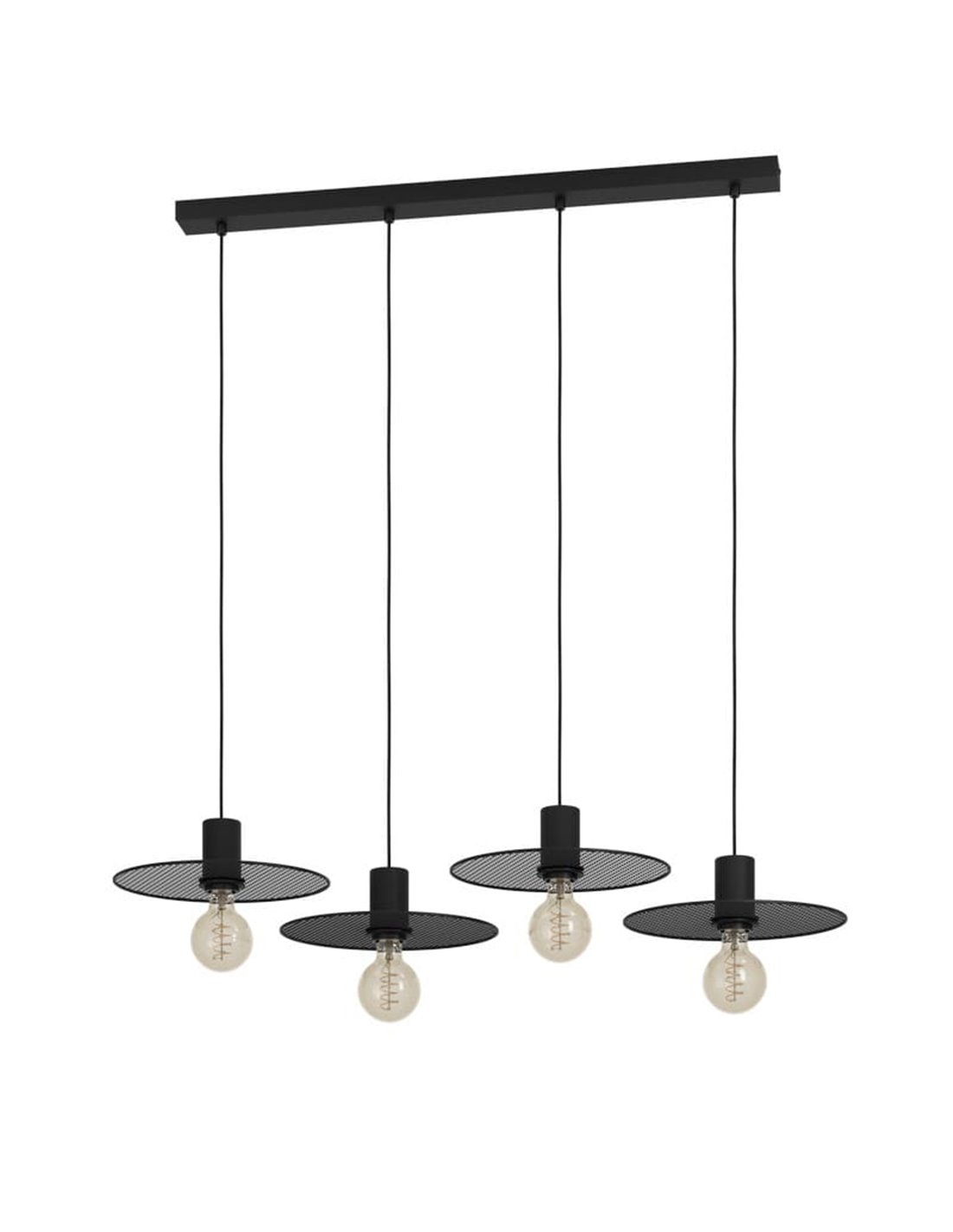Hängelampe EGLO IKESTON mit 4 Lichtköpfen und schwarzer Metallfassung. Industriedesign und elegant. Kompatibel mit E27-Glühbirnen.