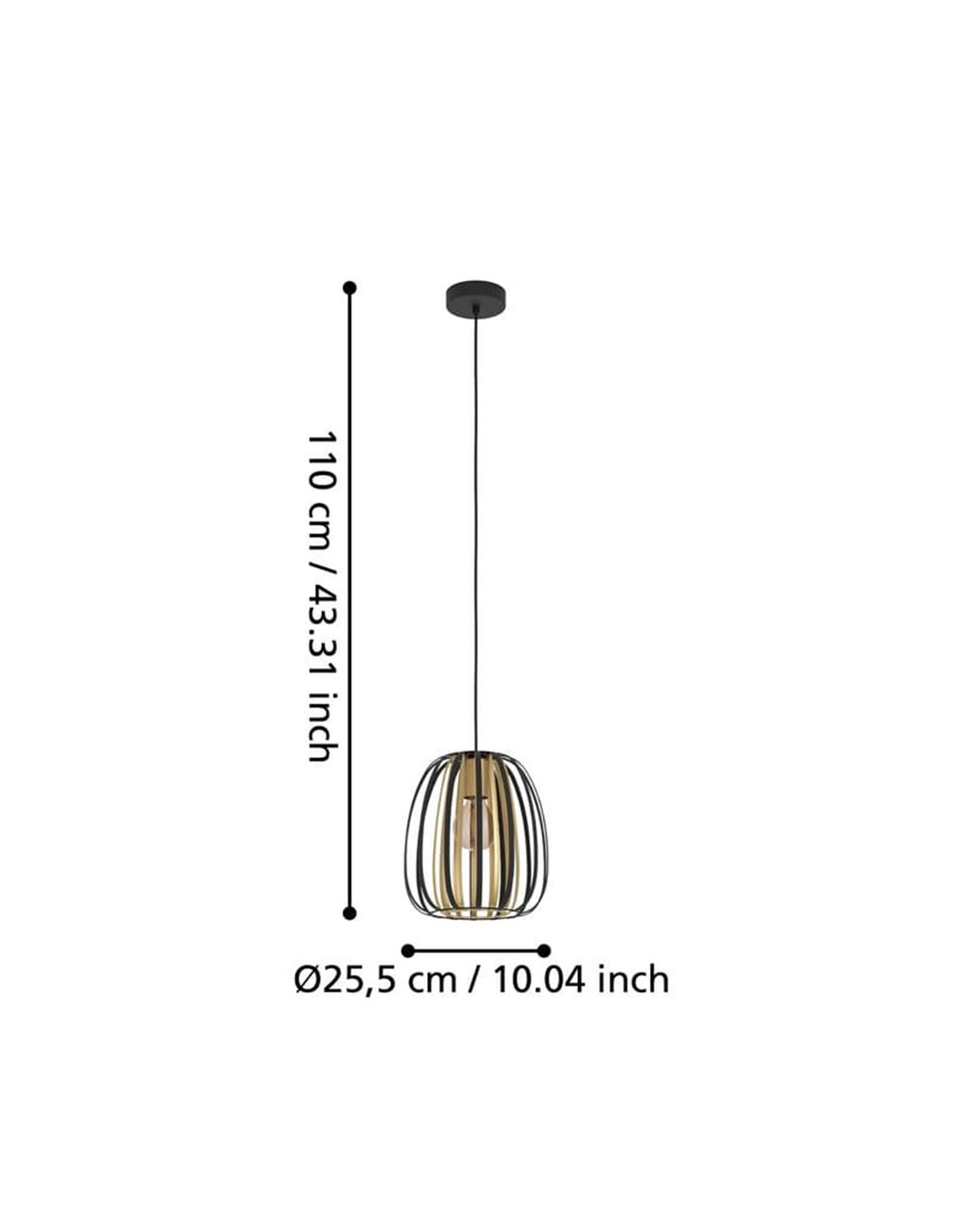 Die Hängelampe Ø255 ENCINITOS von EGLO zeichnet sich durch ihre Konstruktion aus Stahl mit einer Ausführung in Schwarz und Gold aus. Ein Design, das Stil und Funktionalität in Räumen wie Wohnzimmer, Esszimmer oder Schlafzimmer bietet. Mit Fassung E27 und IP20-Klassifizierung ist es eine vielseitige und haltbare Option, die Ästhetik und Praktikabilität kombiniert.