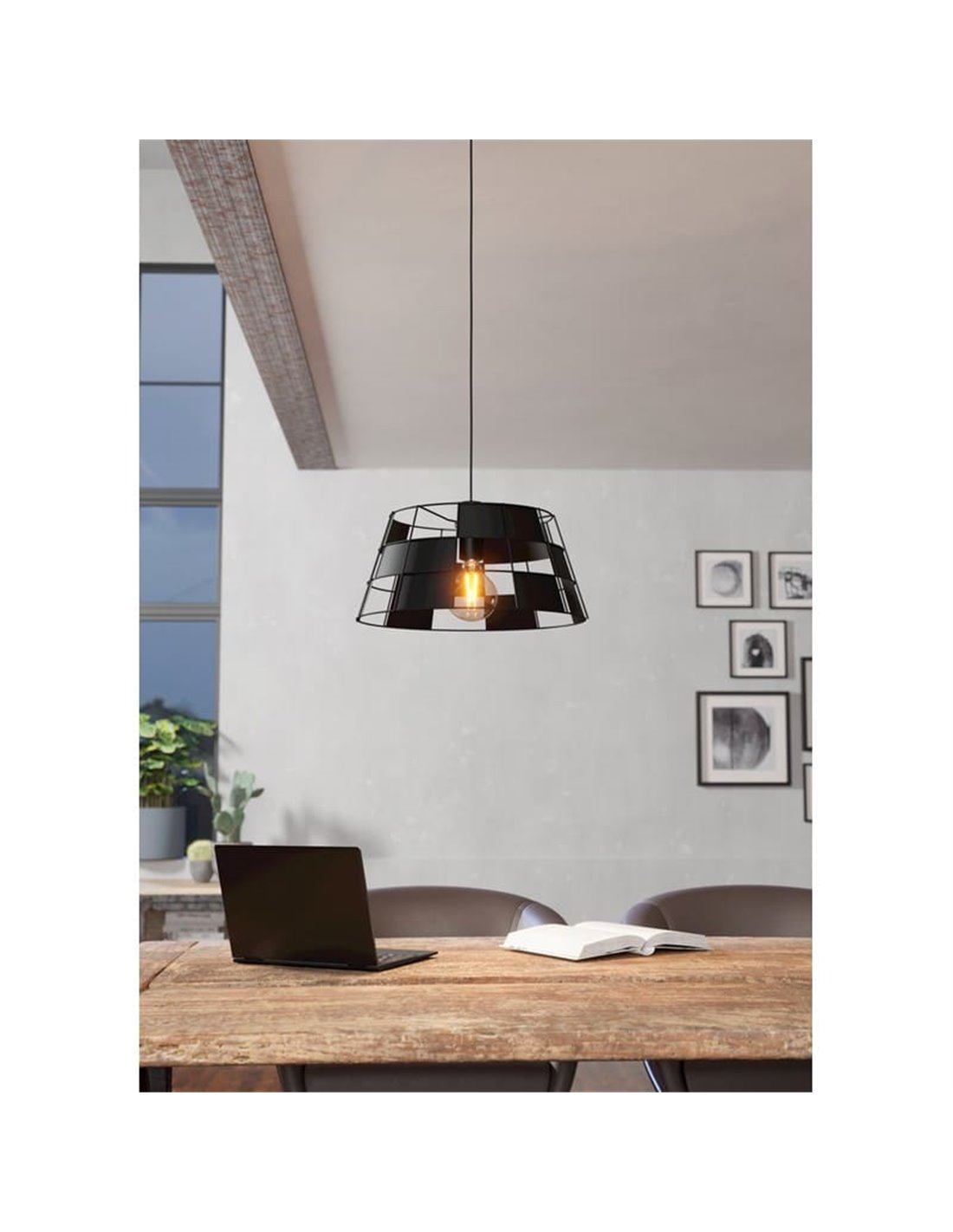 Die Hängelampe PONTEFRACT von Eglo sticht durch ihre Basis und ihren Schirm aus schwarzem Metall mit geometrischen Öffnungen hervor, die einzigartige Licht- und Schattenspiele projizieren. Ihr industrielles und minimalistisches Design fügt sich nahtlos in eine Vielzahl moderner Dekorationen ein und bietet elegante Beleuchtung in jedem Raum. Perfekt für Wohnzimmer, Esszimmer und Schlafzimmer, ist sie kompatibel mit E27-Glühbirnen (nicht enthalten) und besonders geeignet für Filament-Glühbirnen.