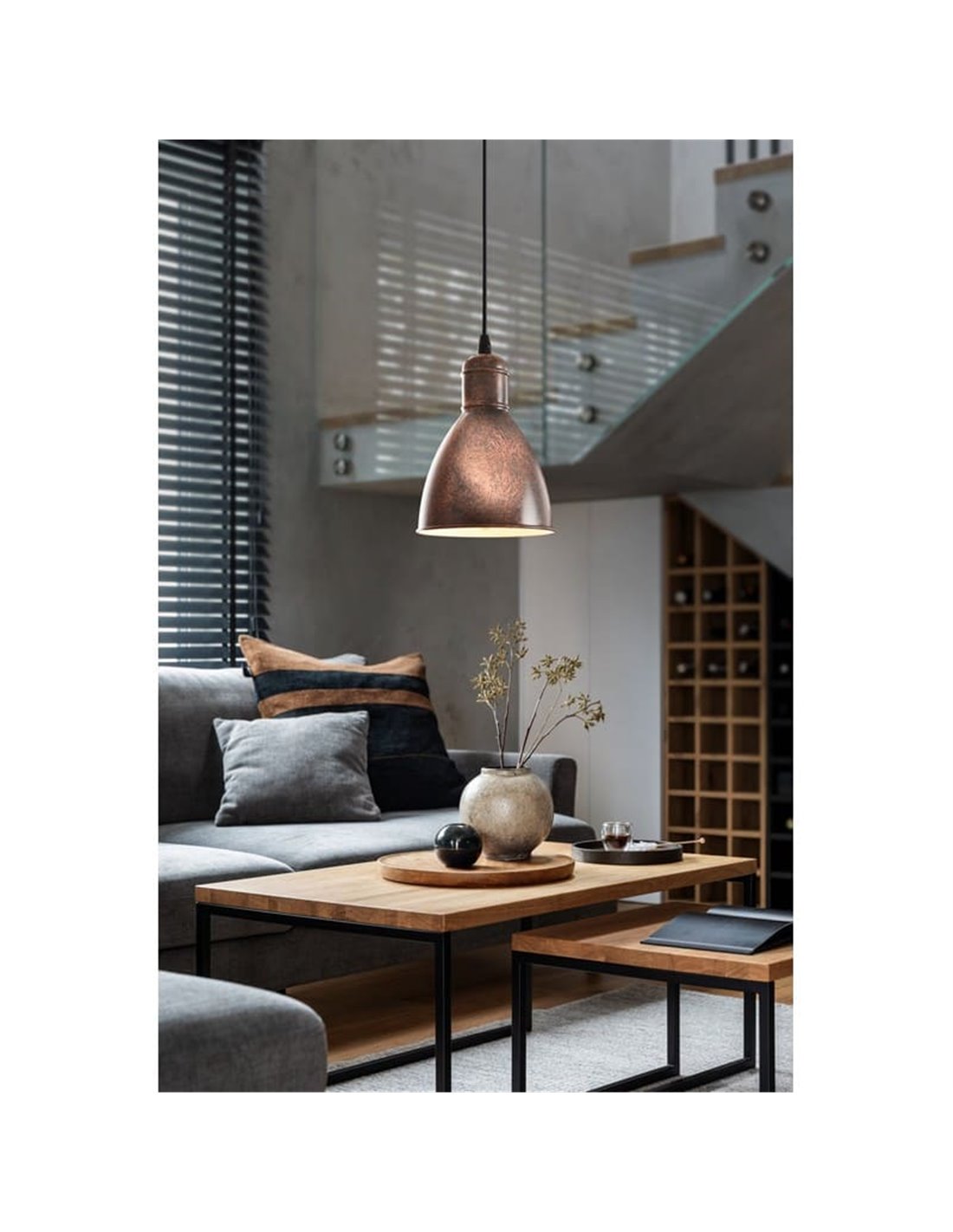 Industrielle Hängelampe PRIDDY 1 von EGLO, mit einer eleganten antiken Kupferoberfläche und einem klassischen industriellen Design, das jedem Raum Charakter und Stil verleiht.