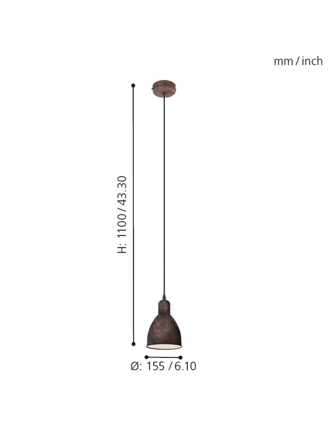 Hängelampe PRIDDY 1 in antikem Kupfer - Industrieller Stil von EGLO