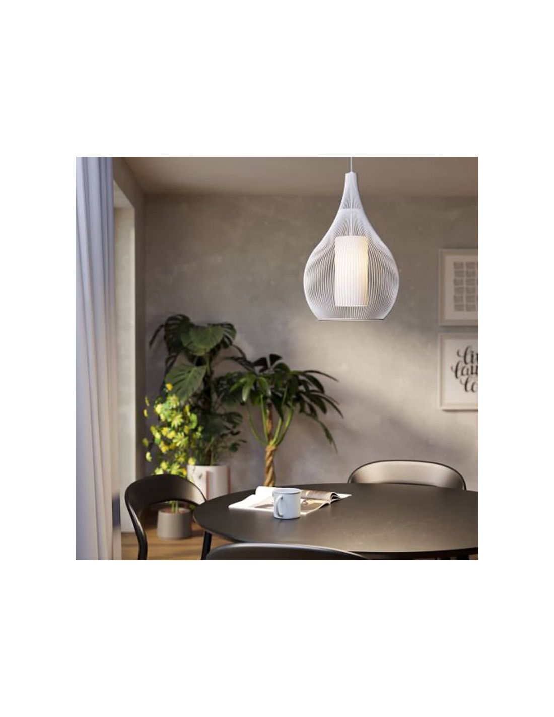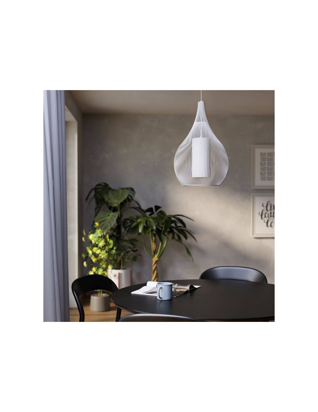 Durch ihr organisches und monochromatisches Design ist diese Lampe ideal für Wohnzimmer, Esszimmer oder Schlafzimmer und fügt sich mühelos in minimalistische, nordische oder zeitgenössische Innenräume ein.