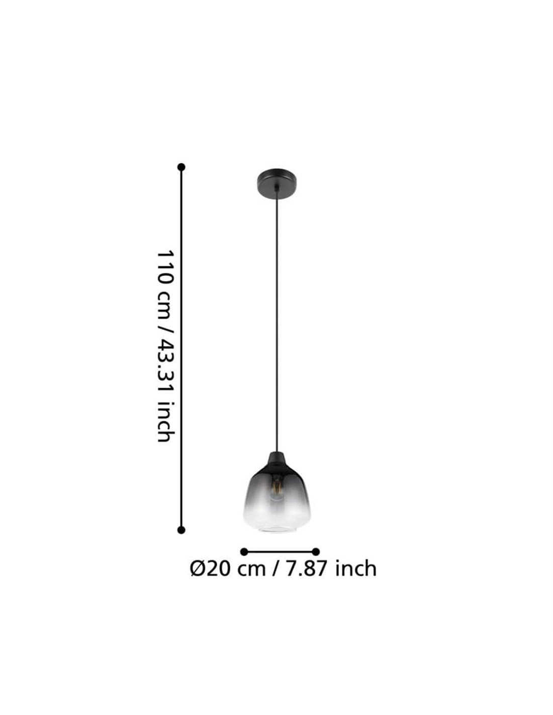 Hängelampe EGLO SEDBERGH mit Glasschirm mit Farbverlauf in schwarz, grau und transparent. Ideal zur stilvollen Beleuchtung deines Wohnzimmers oder Esszimmers. E27-Glühbirne nicht enthalten.