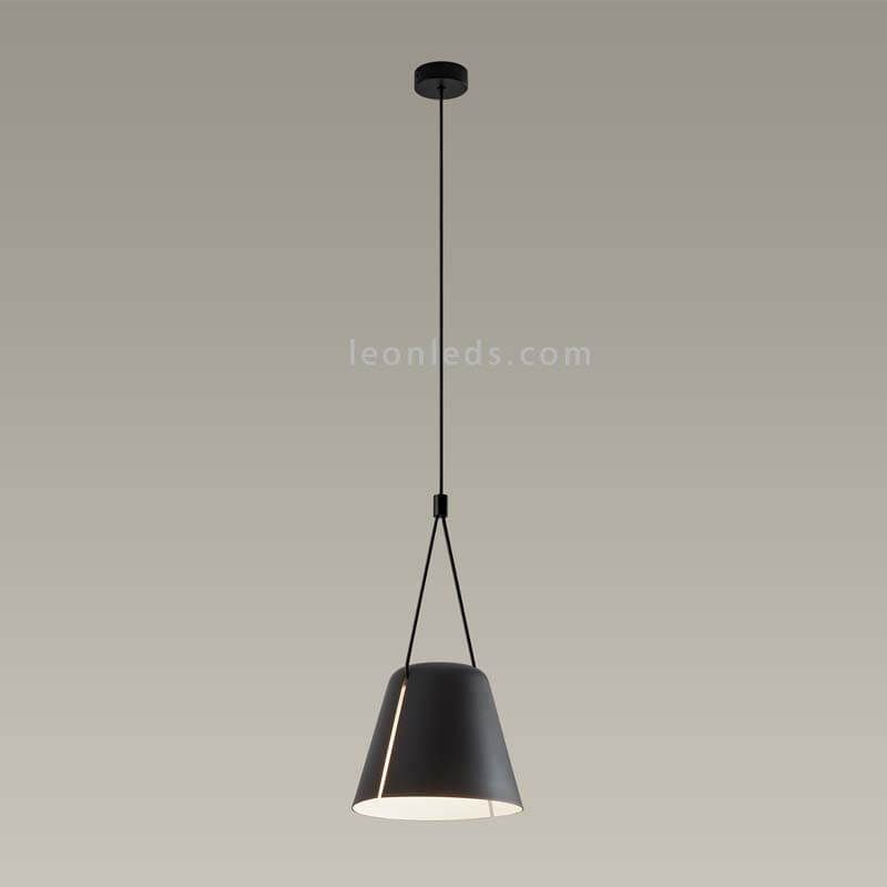 Es handelt sich um eine moderne und zeitgenössische Hängeleuchte, die Präsenz und Eleganz in Ihre Dekorationen bringt. Sie benötigt die Installation einer E27-Birne mit maximal 23W Leistung und einer maximalen Größe von 120/100 mm (nicht enthalten). Der Schirm hängt an einem schwarzen Kabel mit einem passenden Deckenelement.