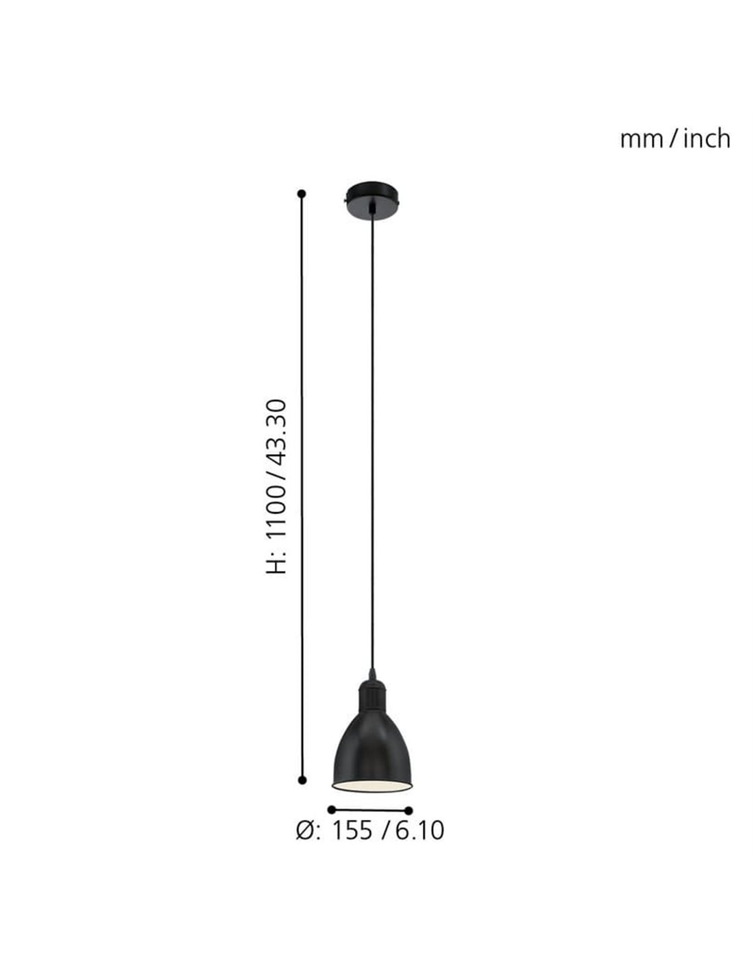 Hängeleuchte PRIDDY von EGLO, mit einem industriellen Design in schwarz, ideal für moderne und klassische Umgebungen. Durchmesser von 15,5 cm.