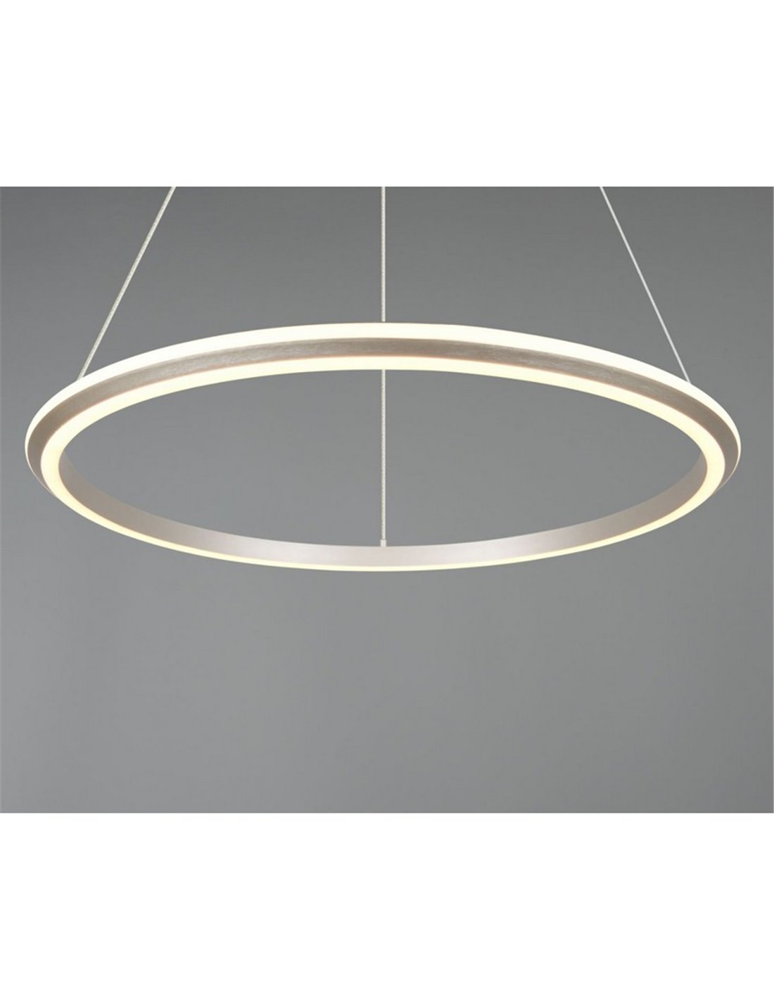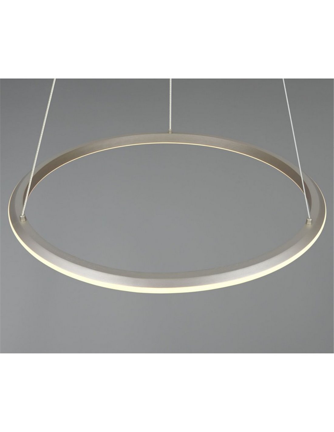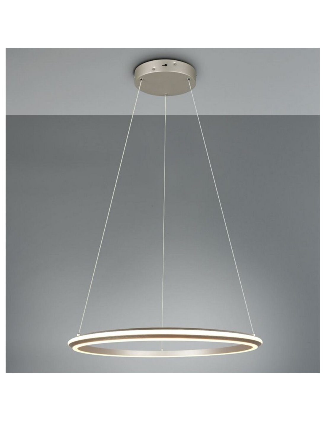 Die Hängeleuchte LED AMADOR Ø75 Nickel kombiniert anspruchsvolles Design und hohe Lichtleistung. Ihre metallische Oberfläche in gebürstetem Nickel verleiht einen eleganten Glanz, der jeden Raum aufwertet. Mit einem Durchmesser von 75 cm und einer höhenverstellbaren Aufhängung bietet sie gleichmäßiges und sanftes Licht, ideal für Esszimmer, Wohnzimmer oder große Bereiche, in denen Komfort und Design gefragt sind.