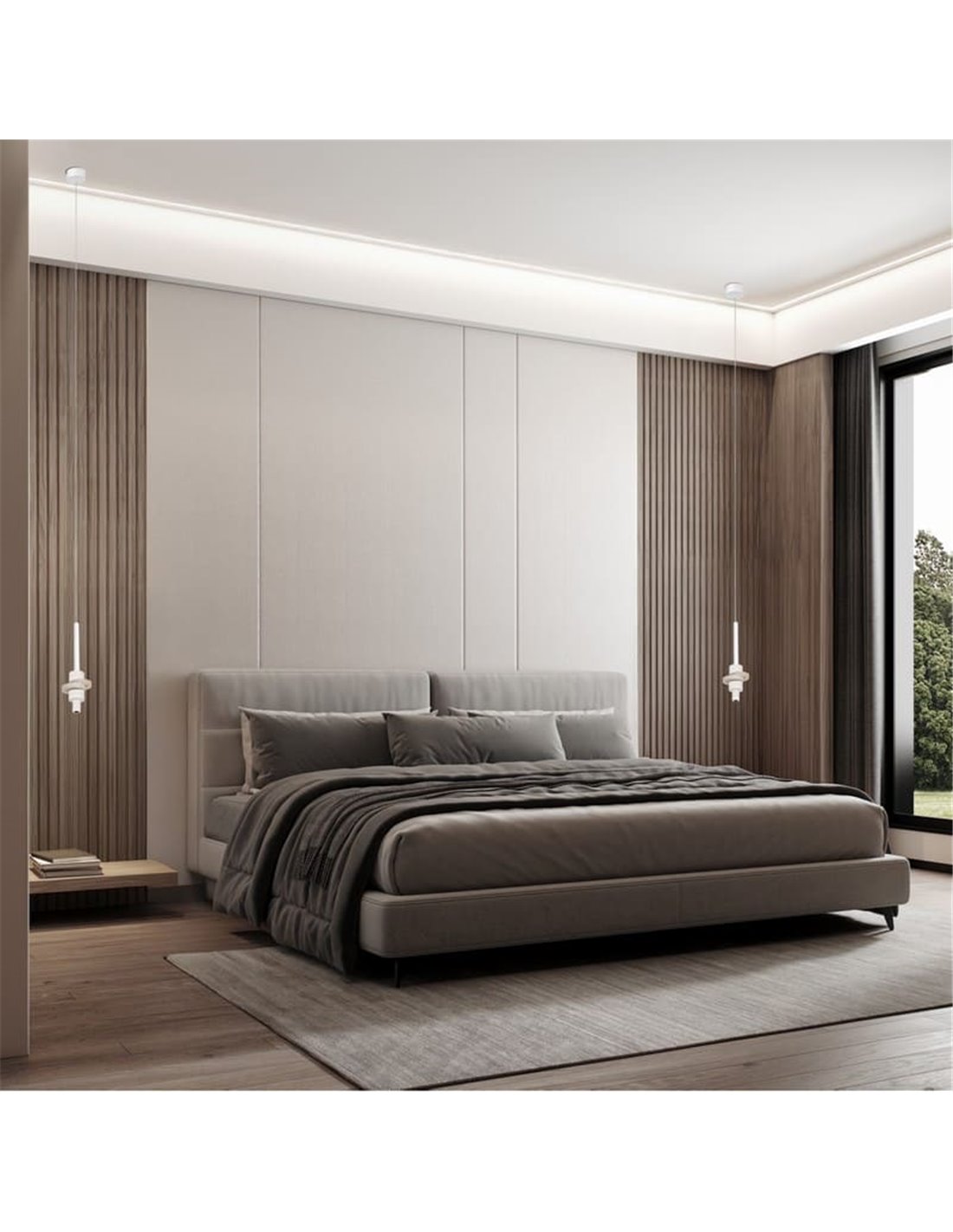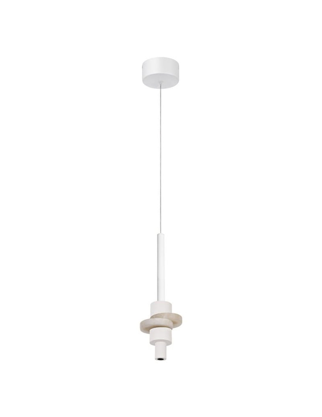 Die BETTY 9425 ist eine Hängeleuchte mit architektonischem Design, die durch die Kombination ihres Gehäuses aus weißem Aluminium und einem dekorativen Ring aus natürlichem Alabaster besticht, einem eleganten Material, das Wärme und einen sanften Lichteffekt bietet. Ihre integrierte LED von 7W liefert 840 Lumen in warmem 3000K Ton, ideal zur Ausleuchtung von Innenräumen, in denen visueller Komfort und zeitgenössische Ästhetik gesucht werden.