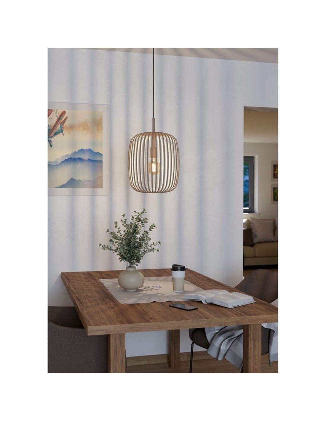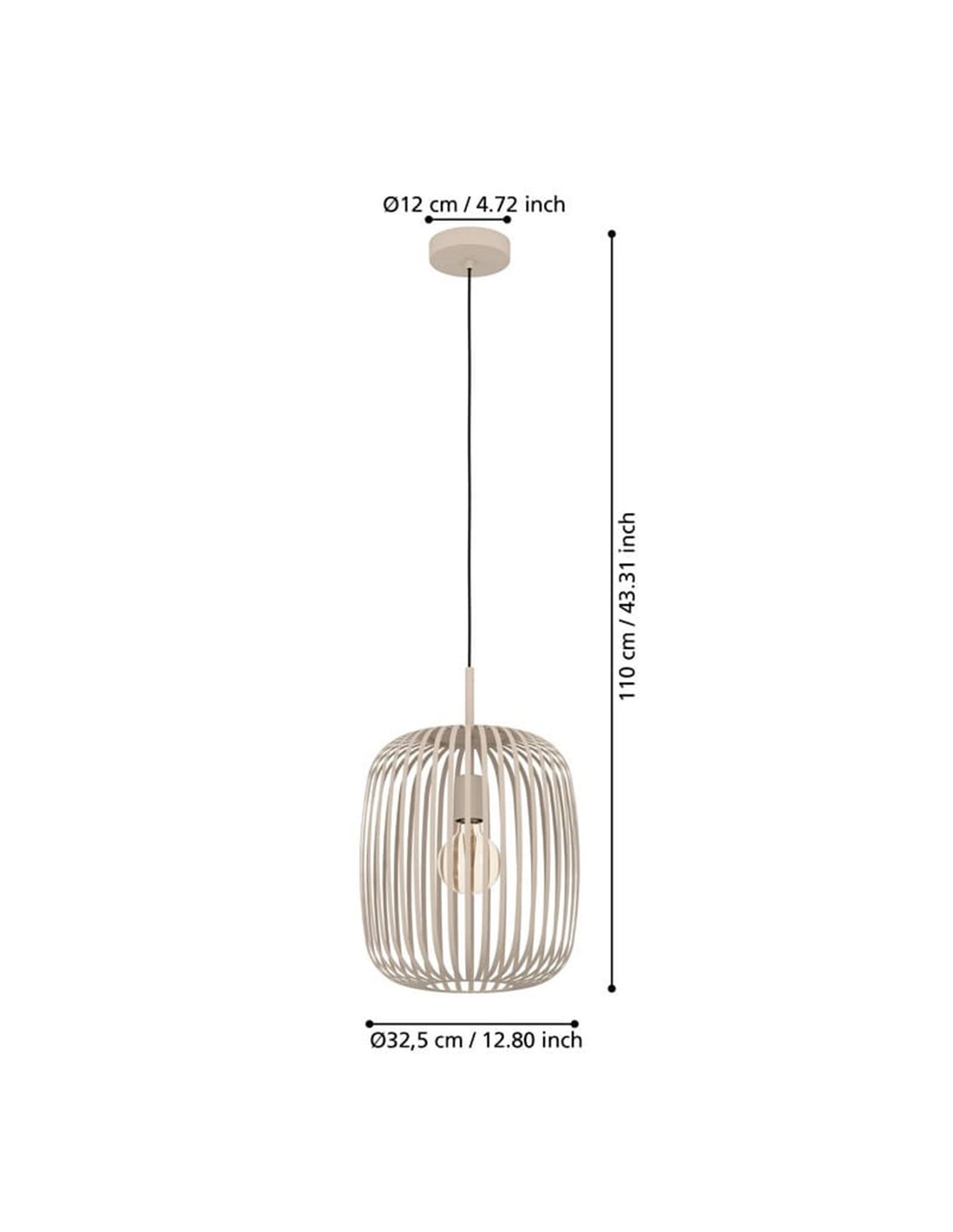 Hängelampe 1 Licht ROMAZZINA von EGLO in sandfarbenem Finish mit rundem Schirm aus Metallstreifen, mit E27 für den Innenbereich. Abmessungen: ↕ 1100 mm | Ø 325 mm.