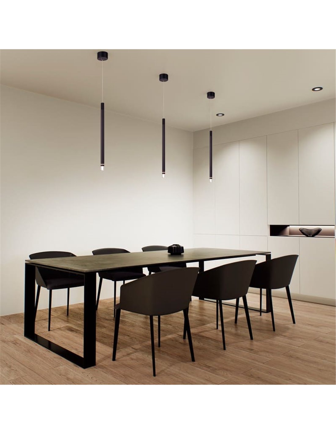 Mit ihrem schlanken Design und ihrem beleuchteten Detail ist diese Hängelampe perfekt für alle, die nach einem modernen und eleganten Stil suchen. Darüber hinaus trägt ihr warmes Licht zur Schaffung einer entspannenden und einladenden Atmosphäre bei.