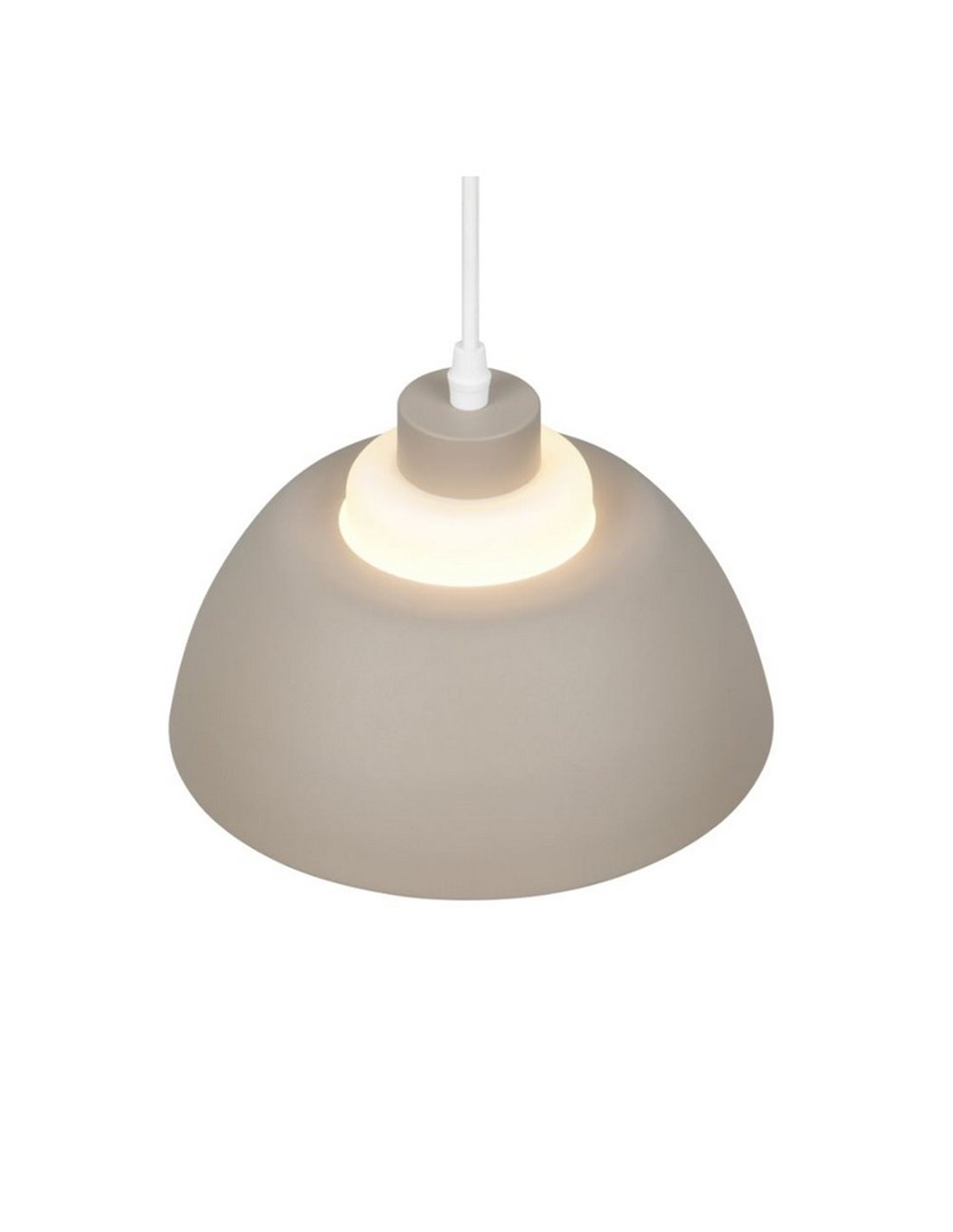Die TILOS ist eine Hängelampe mit einem schlichten und modernen Design, die darauf abzielt, sanftes Umgebungslicht zu spenden. Ihre Struktur aus beigem Metall kombiniert sich mit einem weißen Glasschirm, der das Licht weich und eine gemütliche Atmosphäre schafft.