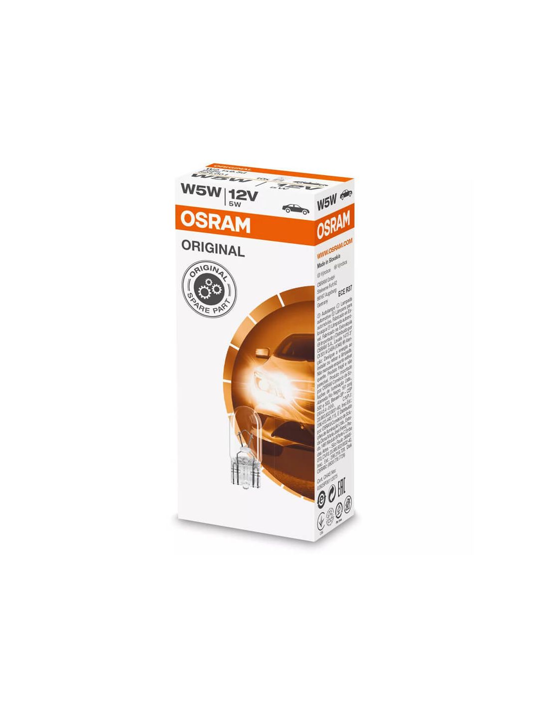 Halogenlampe W5W (W2.1x9.5d) der Marke Osram Originalreihe für 12V-Fahrzeuge mit einer Leistung von 5W, Lampe ohne Sockel, die für Innenbeleuchtung, Kennzeichenbeleuchtung, Positionsbeleuchtung... Transparentes Glas verwendet wird.
