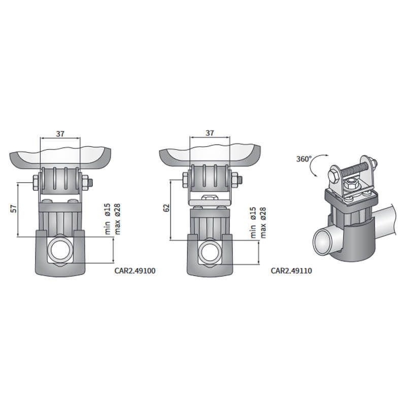 Halterung zur Installation von LED-Arbeitsscheinwerfern an rundem Stab mit einem Durchmesser von 15 bis 28mm, beinhaltet Schrauben und ist gültig für Fluter mit einer Halterungslänge von 37mm. Hergestellt aus hochwertigem Edelstahl und Kunststoff, beinhaltet Schrauben.