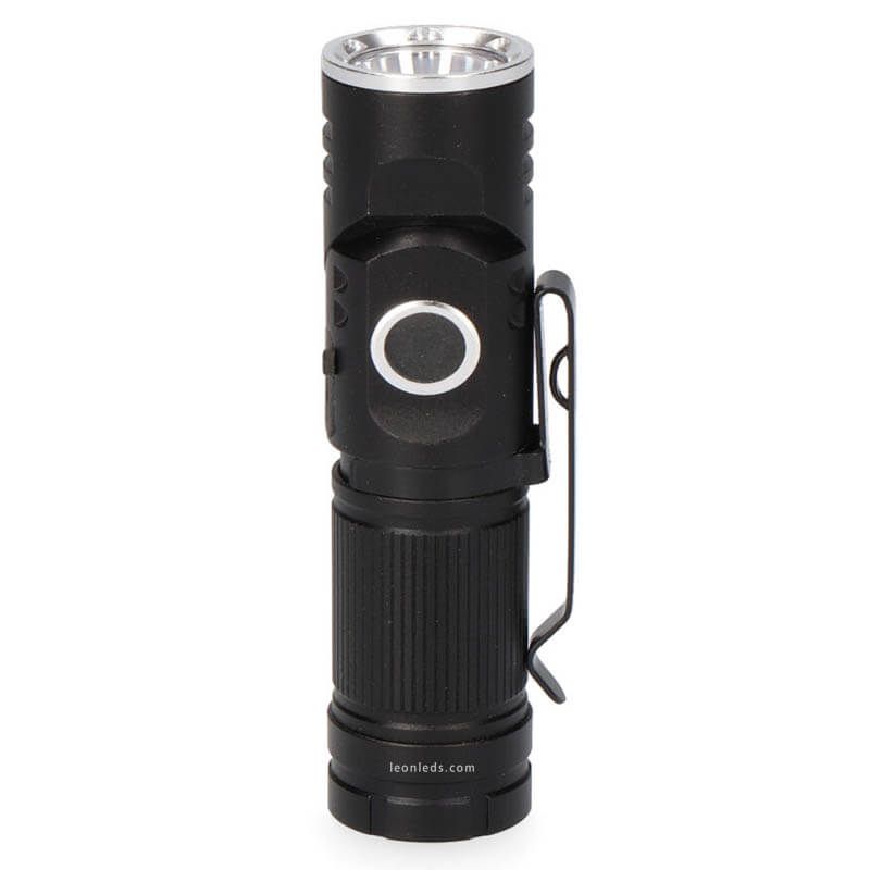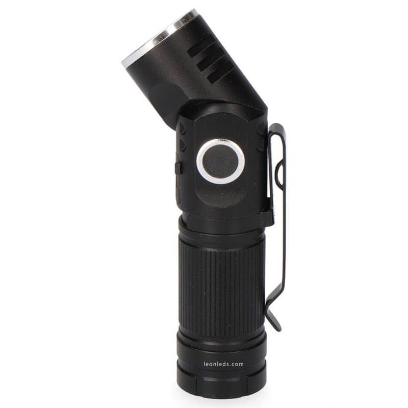 Wiederaufladbare LED-Handlampe über USB, mit drehbarem Lichtkopf, magnetischer Basis und Clip mit einer Leistung von 8W, 3 Stufen, 450Lm, 200Lm und Blitzmodus. Sie kann über USB aufgeladen werden (Kabel nicht enthalten). Sie enthält einen Akku mit einer Autonomie von bis zu 2 Stunden bei 700mAh und der Kopf ist bis zu 90º drehbar, der Ein-/Ausschalter befindet sich an der Seite der Lampe.