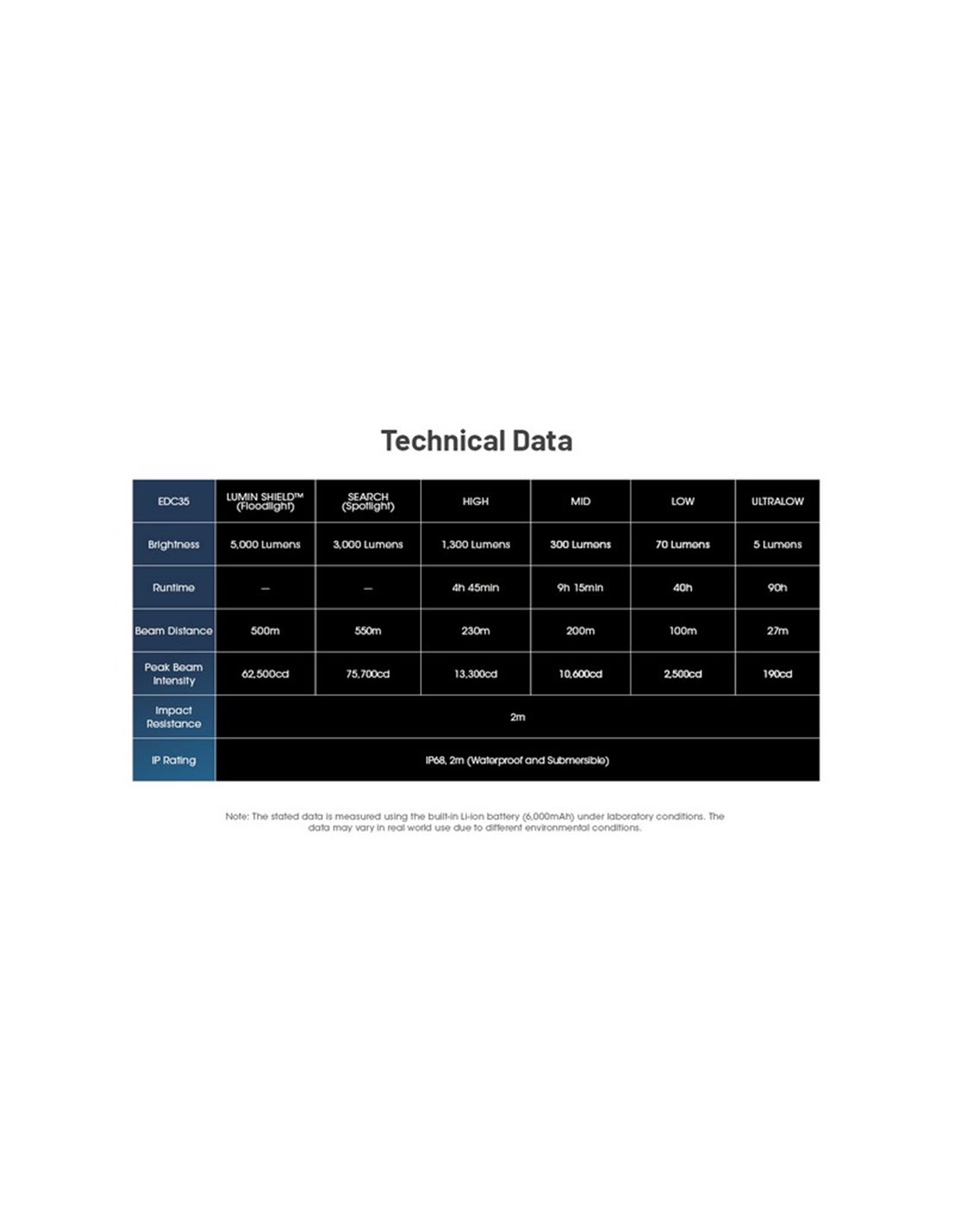 Die Handlampe NITECORE EDC35 bietet 5000 Lumen und eine Reichweite von 550 Metern, perfekt für Such und Rettungsaktionen. Mit einer integrierten 6000 mAh Batterie, USB-C-Ladung und IP68 Widerstand ist sie ideal für extreme Bedingungen.