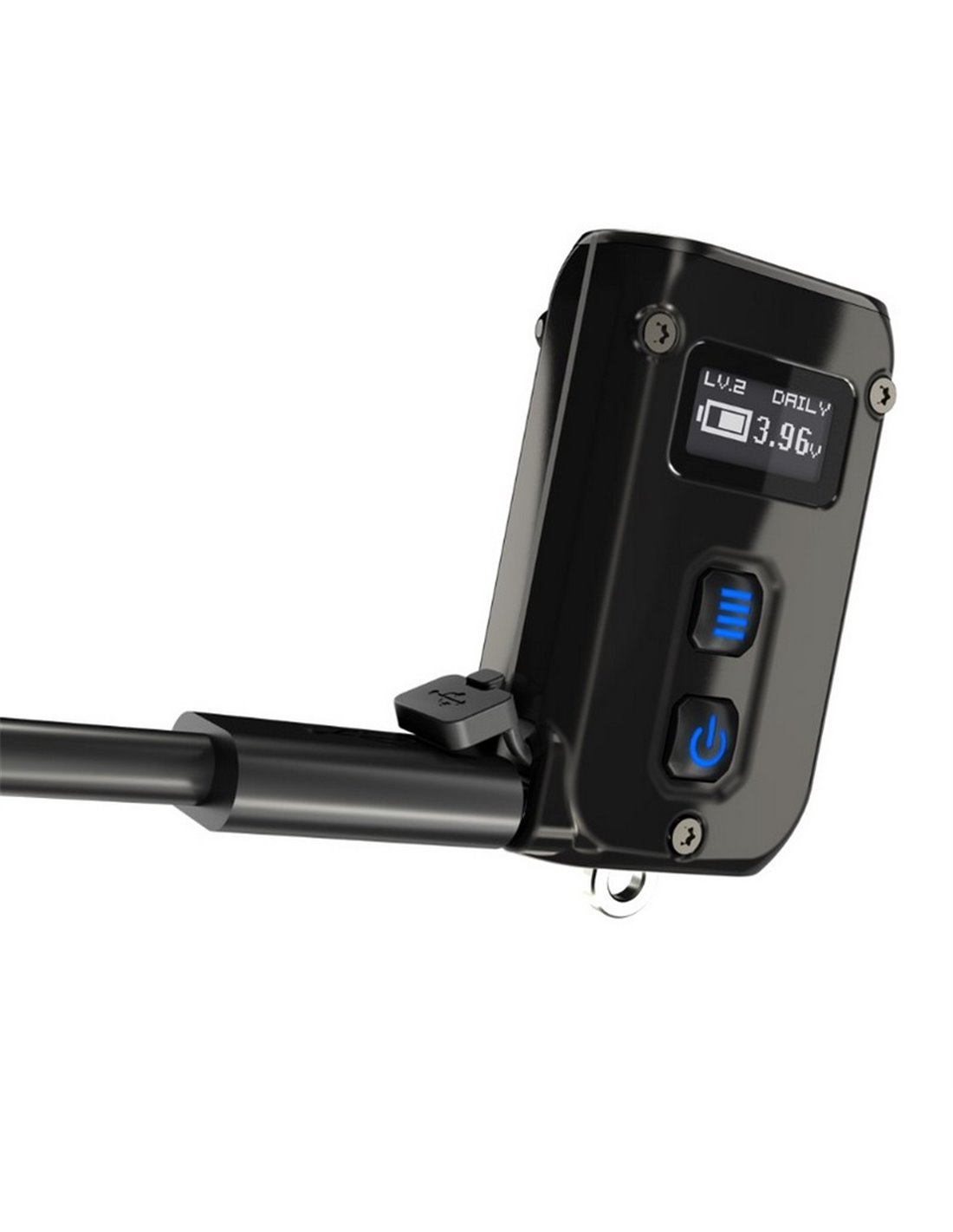 - Wiederaufladbare Li-ion Batterie von 500mAh mit USB-C-Anschluss.