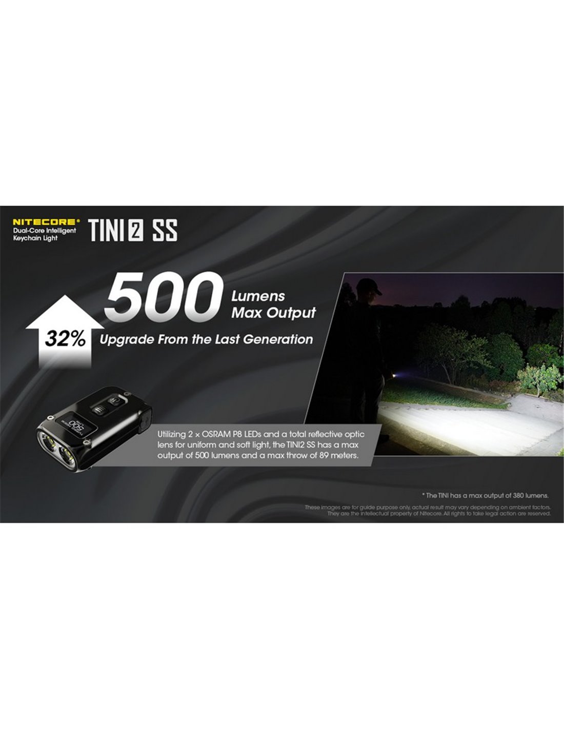 Die Hand-Taschenlampe Tini2 SS von NITECORE® ist eine ultrakompakte Taschenlampe, die große Leistung und Widerstand kombiniert. Mit einer maximalen Leistung von 500 Lumen und einer Reichweite von bis zu 89 Metern ist sie das ideale Werkzeug für alle, die eine tragbare und leistungsstarke Lichtquelle benötigen. Dank ihrer kompakten Größe kann sie einfach als Schlüsselbund-Accessoire mitgenommen werden und in jedem Moment nützlich sein.