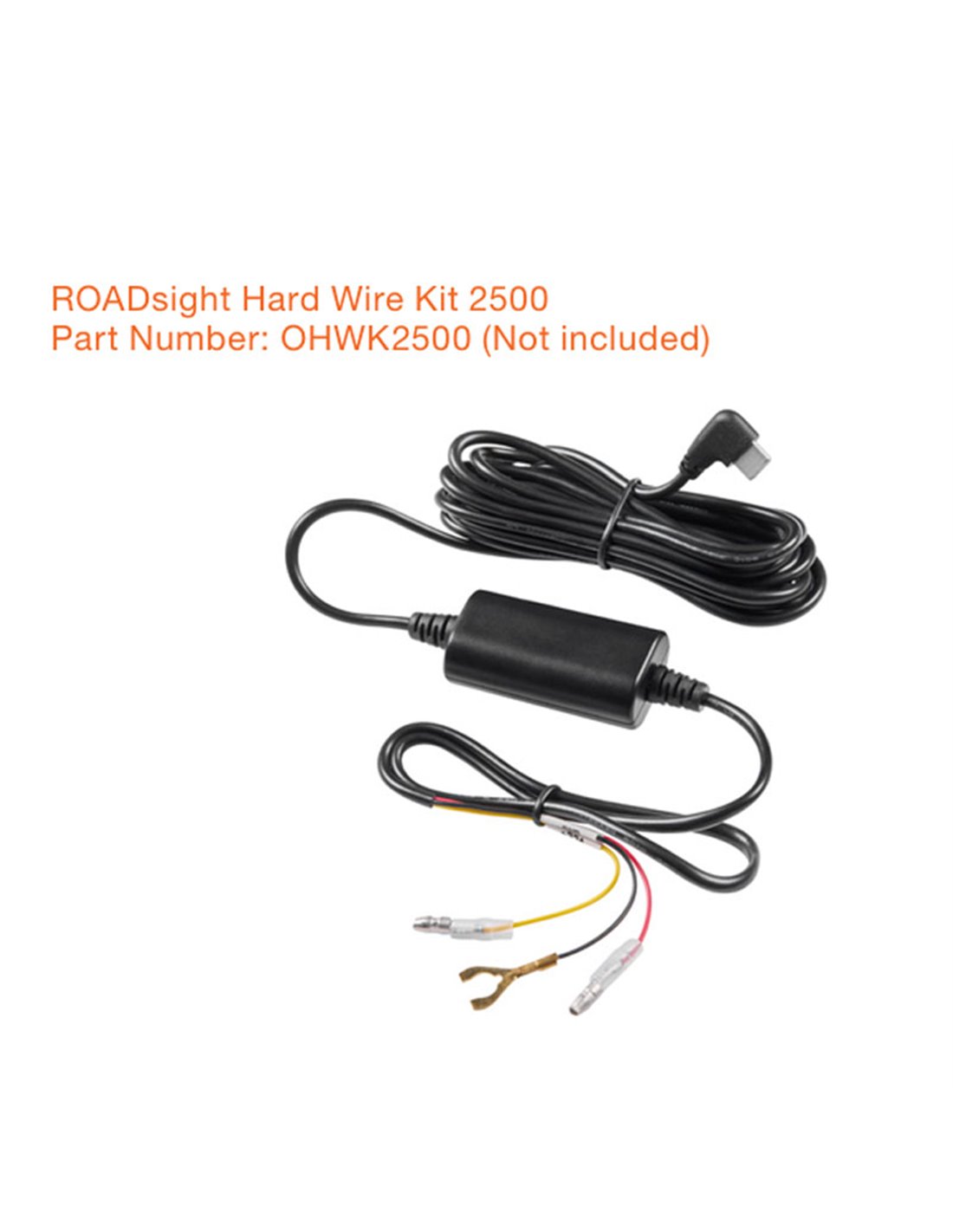 Hardwire Kit OSRAM ROADSIGHT OHWK2500 zur direkten Stromversorgung Ihrer Dashcam ROADSIGHT 2500 aus dem Sicherungskasten und zur Aktivierung des Parker-Modus. USB-C-Ausgang zur Kamera und drei Anschlüsse: Masse (schwarz), ACC (rot) und permanente Zündung VCC/B+ (gelb) mit add-a-fuse-Adapter für eine saubere Installation. Kompatibel mit Fahrzeugen 12/24 V, hält die Windschutzscheibe frei von der Zigarettenanzünderbuchse und ermöglicht der Kamera, Ereignisse im geparkten Zustand aufzuzeichnen.