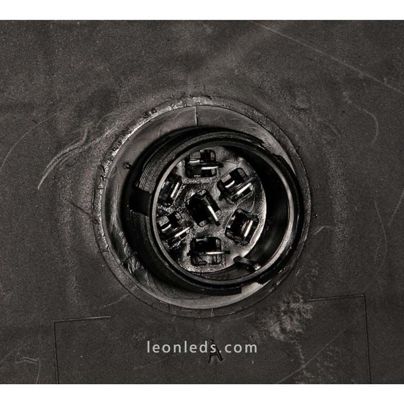 Hinterlicht mit Dreieck gültig für 24V Installationen mit einer Schutzart gegen Wasser und Staub von IP69K, mit 7-poligem Tyco AMP Stecker oder mit ASS2.1 + 2X2P + ASS Stecker.