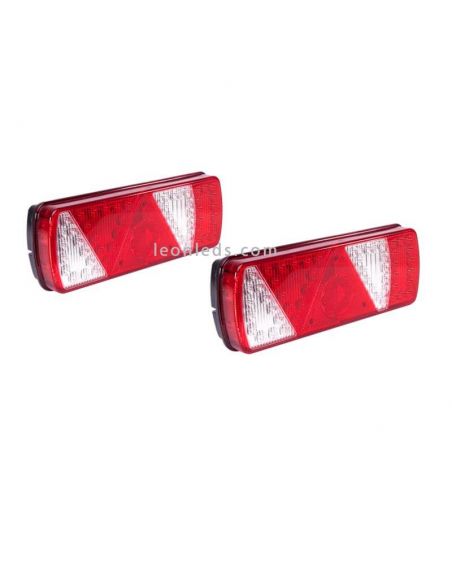 Hinterlicht LED mit Dreieck mit 7 Funktionen, verfügbar mit 7-poligem AMP Anschluss ASS2.1 oder mit ASS2.1 + 1 X 7 Poles + 2 X 2 Poles, Modell Ecoled von Aspock, gültig für 24V mit einer Schutzart gegen Wasser und Staub von IP69K. Enthält LED Positionslicht, LED Bremslicht, LED Blinker, LED Rückfahrlicht, LED Nebelscheinwerfer und reflektierendes Dreieck.