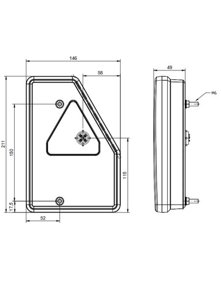 Hohes LED-Rücklicht mit Dreieck und Kabel der Marke Fristom Modell FT-277, bietet 6 Funktionen. Es kann nur in 12V Installationen eingebaut werden und beinhaltet 1 Meter Kabel für die Installation. Dieses Rücklicht ist homologiert, hat 2 Jahre Garantie und ist tauchfähig. Sein Betriebstemperaturbereich liegt bei -40ºC bis +55ºC, wähle die linke oder rechte Seite.