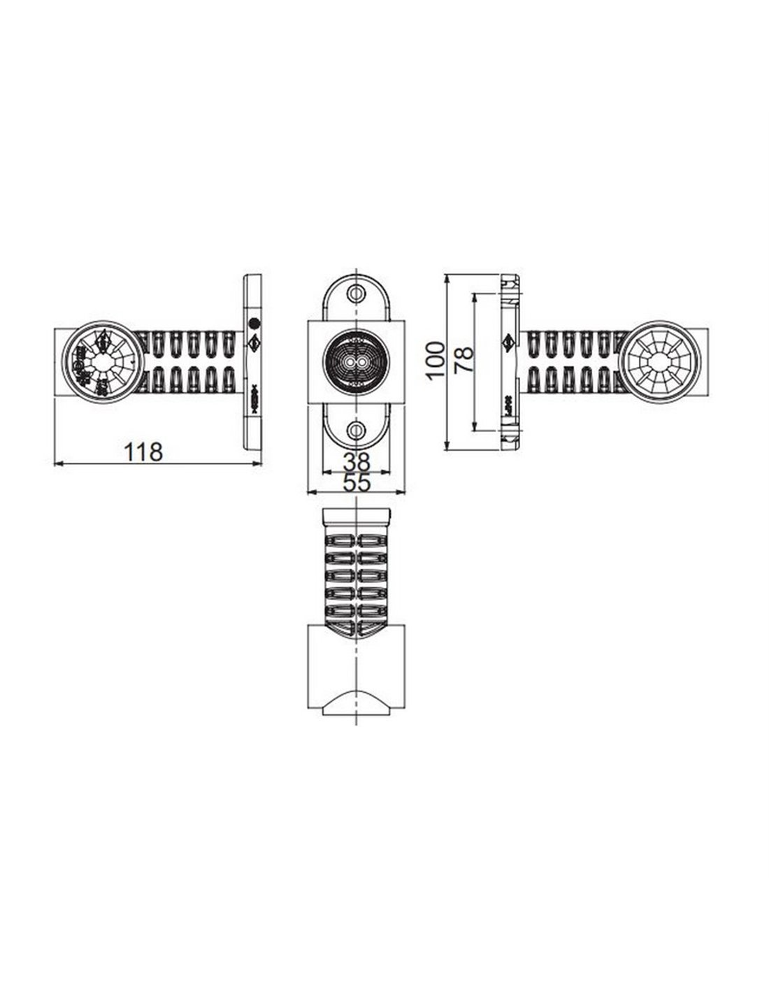 Abmessungen: 118 mm lang | 100 mm hoch | 55 mm breit