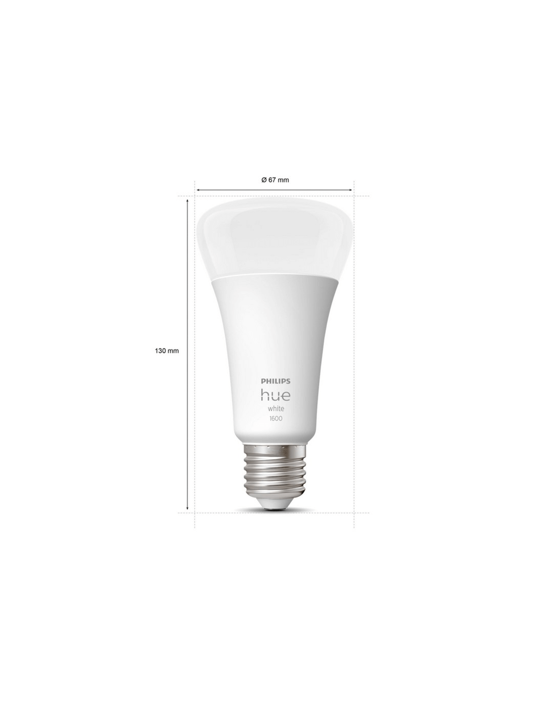 Genieße eine helle Beleuchtung in Räumen wie der Garage oder der Küche und benutze sanftere Lichter in jedem Raum mit der Philips Hue White A67 Glühbirne, die einen starken Fluss von 1600 Lumen und kabelloses Dimmen bietet. Verbinde dich mit einer Hue Bridge, um die Vielzahl von intelligenten Beleuchtungsfunktionen zu genießen.