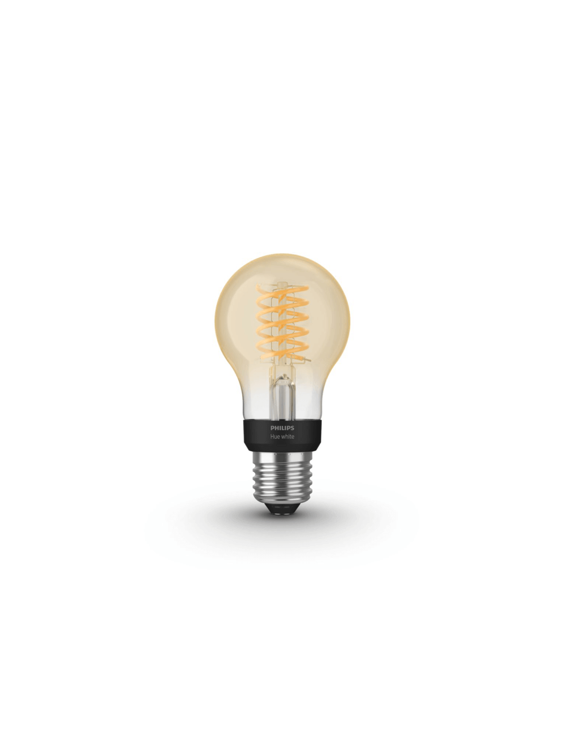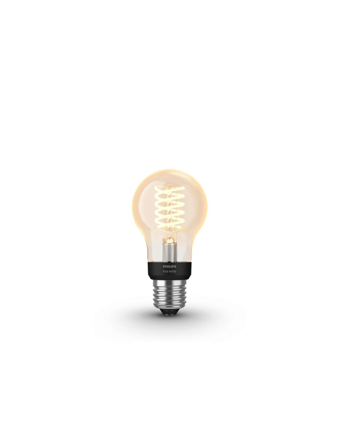 Hue White Filament in A60 Format und E27 Sockel ist eine moderne Glühbirne, mit der du Licht schaffen und Akzente setzen kannst und Atmosphäre erzeugen kannst. Es ist eine LED-Globe mit spiralförmigem Filamentdesign im Vintage-Stil und modern, da sie die gleichen Funktionen wie andere intelligente Glühbirnen hat, einschließlich der Helligkeitsregelung.