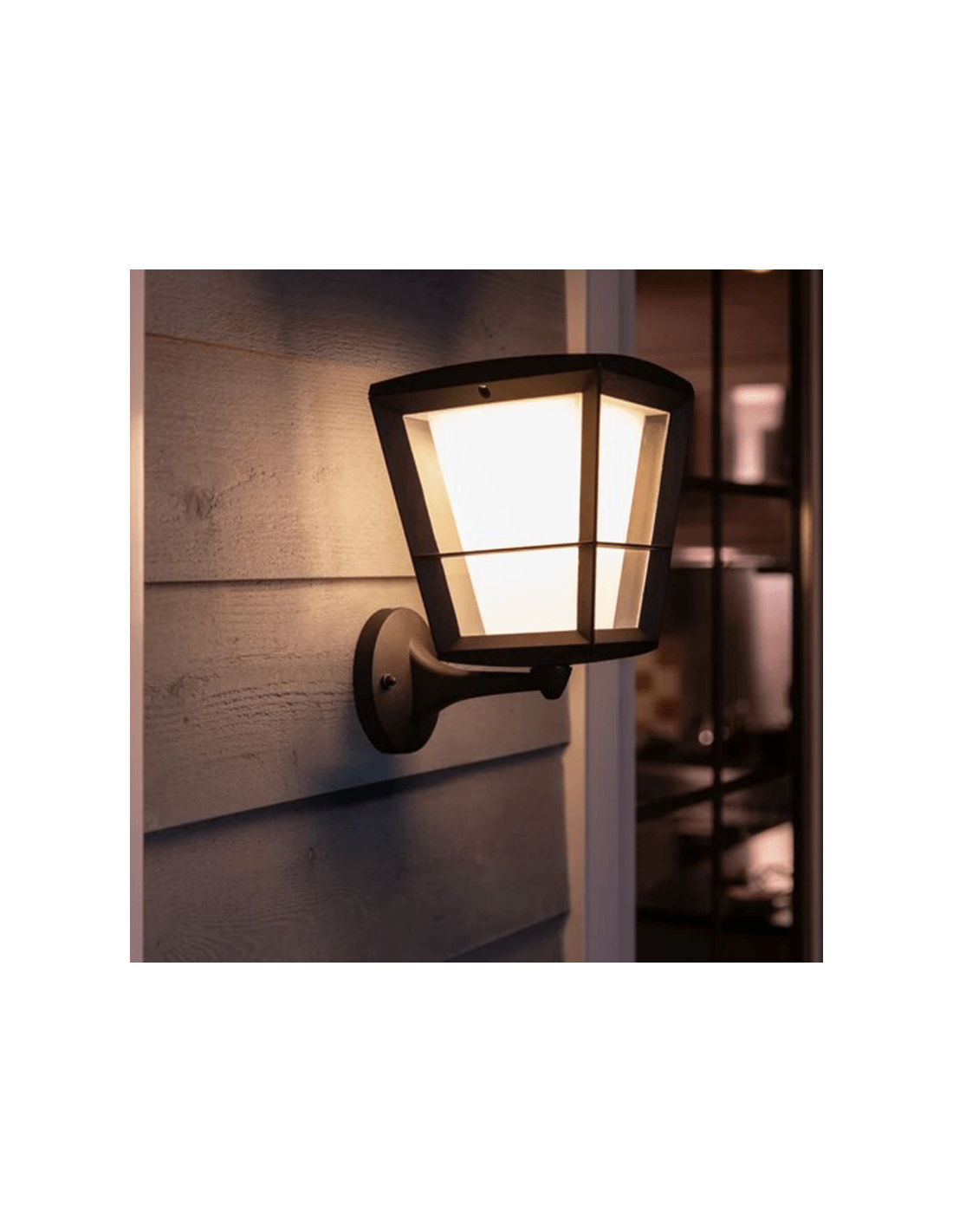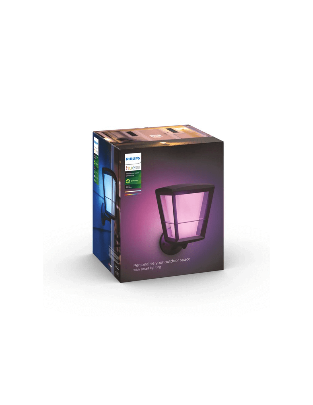 Bringen Sie die Hue-Technologie in Ihre Außenbereiche (IP44) Ihres Heims mit der Wandlampe Econic. Sie kann mit Ihrer Hue-Brücke verbunden werden, um alle intelligenten Funktionen wie Fernsteuerung und Programmierung zu nutzen. Die Hue-Brücke ist nicht im Lieferumfang enthalten.