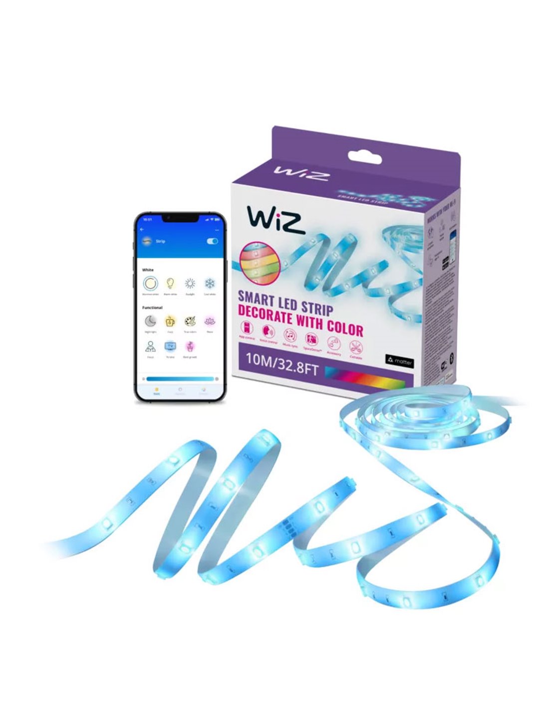 Wähle das WiZ RGB LED-Band 10 m 24 V und genieße intelligente, sichere und vollständig anpassbare Beleuchtung. Volle Kontrolle, einfache Installation und vielseitiges Design für dein Zuhause.