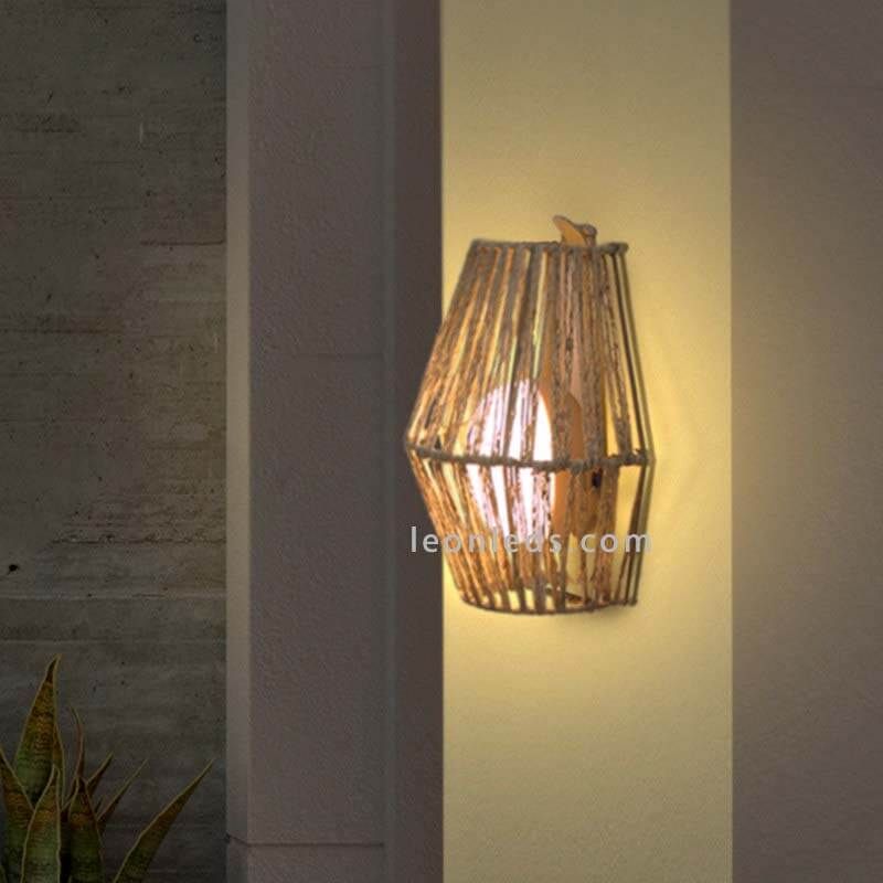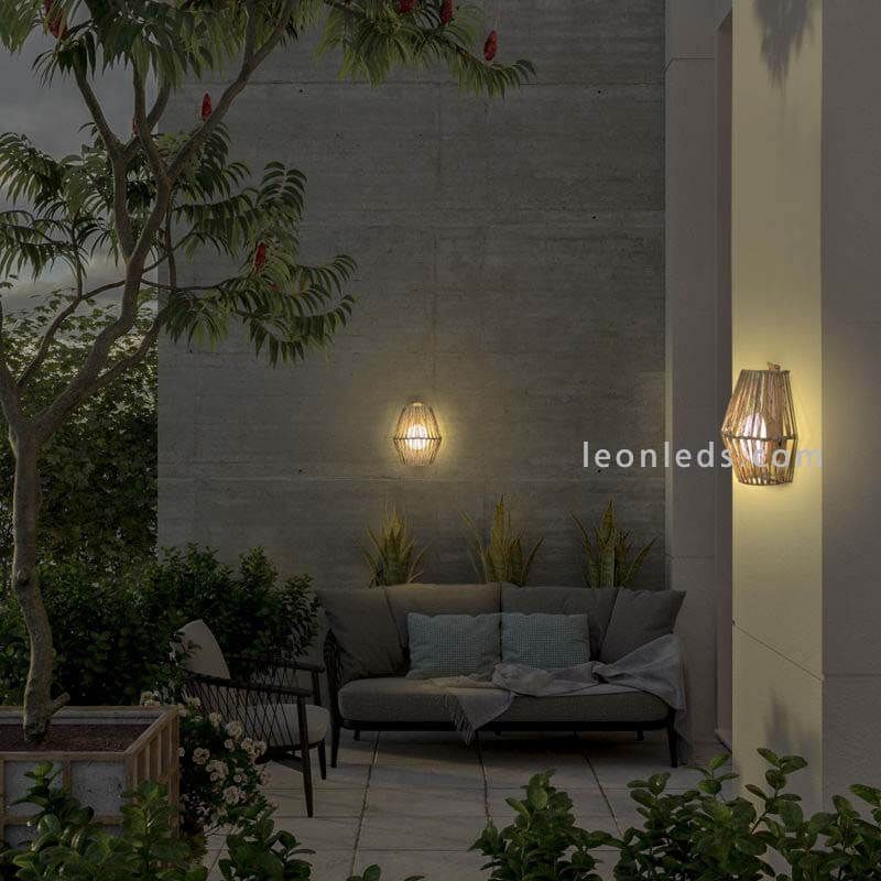 Ihr Schutz gegen Wasser und Staub mit der Schutzart IP54 ermöglicht die Nutzung sowohl im Innen- als auch im Außenbereich, schützt sie jedoch in feuchten und regnerischen Umgebungen. Die Maße sind in einem der Fotos zu sehen: Höhe von 24,5Cm, eine Breite von 22,5Cm. Ihre Struktur besteht aus Jute und Holz, und ihre Form ist modern, was sie ideal macht, um jede rustikale Wand zu dekorieren und zu beleuchten, wie Wände von Außenesszimmern, Terrassen und Veranden sowie Mauern.