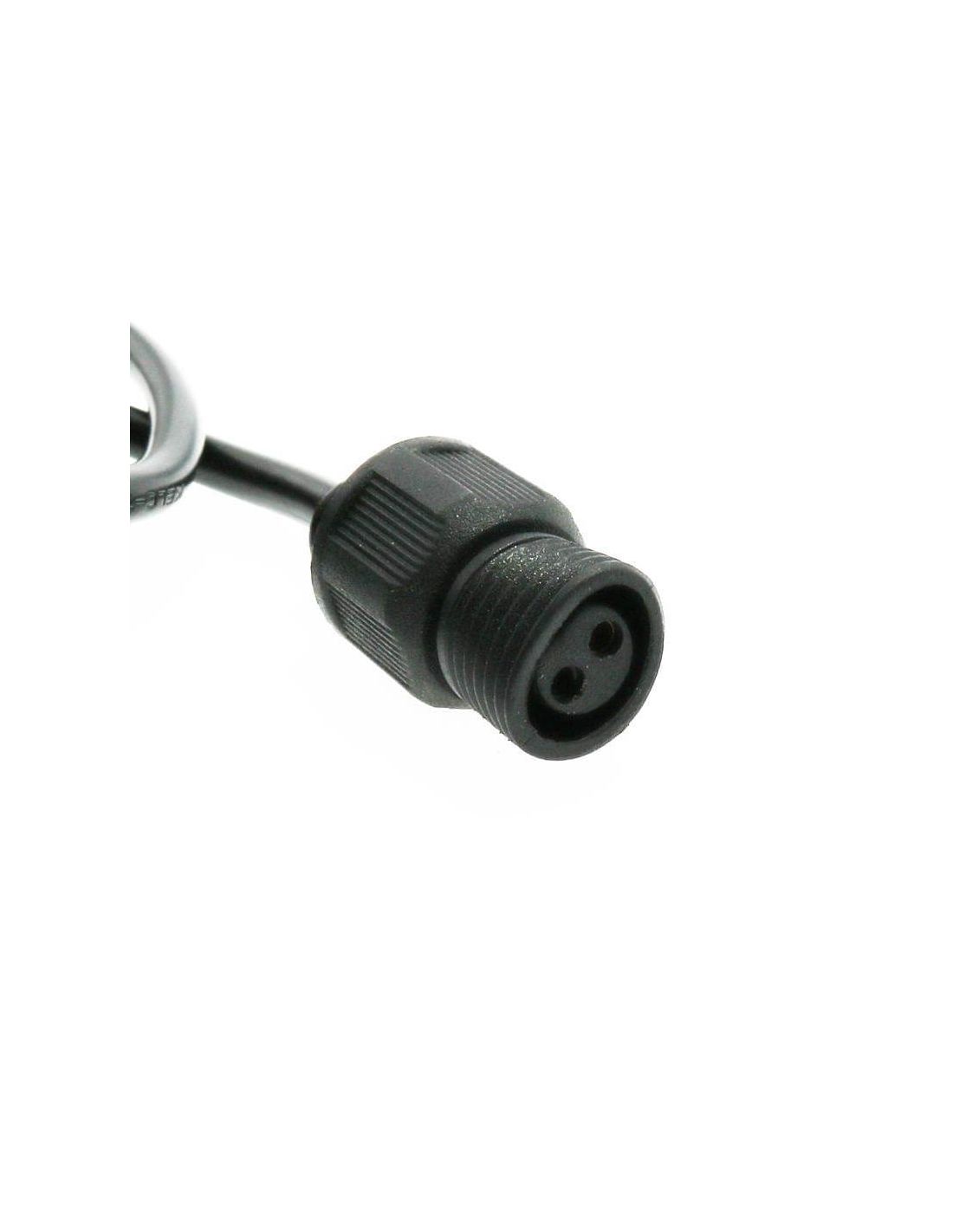 2-Meter-Kabel mit wasserdichten IP65 Steckern in Schwarz für Solar-LED-Projektoren, geeignet für die 3 verfügbaren Wattagen auf unserer Website.