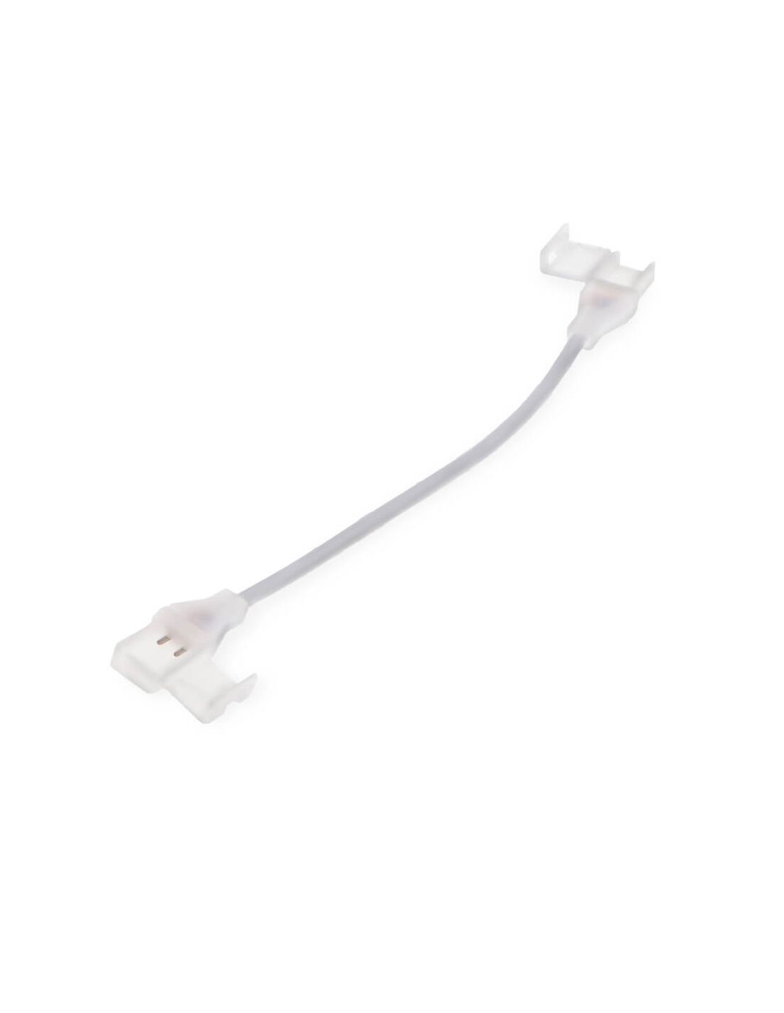 Das doppelt crimpbare Adapterkabel für LED-Streifen 220 V AC COB mit transparentem Finish ermöglicht sichere und professionelle Verbindungen in Hochvolt-LED-Streifeninstallationen. Sein System mit doppelter Verbindung erleichtert die Verbindung zwischen Segmenten oder die Versorgung von beiden Enden und gewährleistet einen festen und dichten Kontakt.