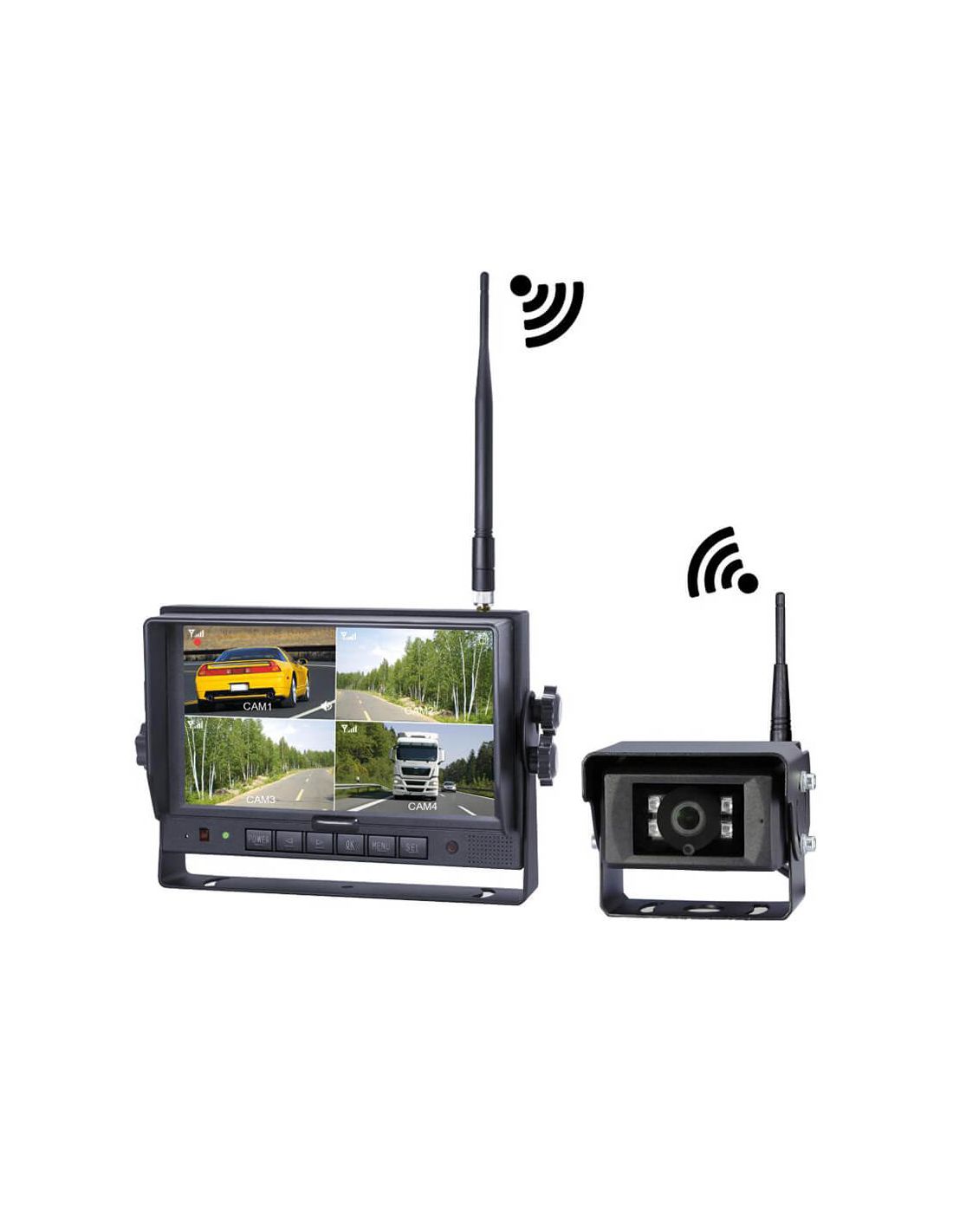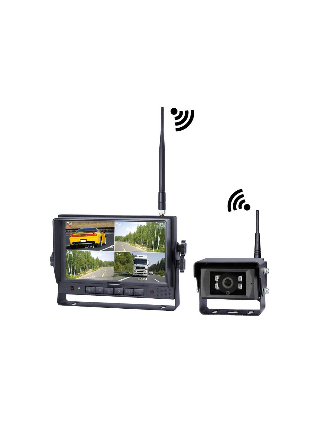System aus kabelloser HD 1080P-Kamera mit 7” Bildschirm und Übertragung von bis zu 300 Metern. Ideal für Lkw, Anhänger, landwirtschaftliche Maschinen und Baustellenfahrzeuge.