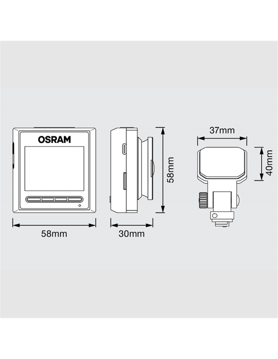 Dashcam OSRAM ROADsight 2500 mit Video Full HD 1080p bei 30 fps und Weitwinkel 140°, um mehr Szene bei jeder Fahrt zu erfassen. Enthält HDR, um Bilder bei hohem Kontrast zu verbessern, G-Sensor, der Dateien im Fall von Stößen sperrt, und PARKMODUS (empfohlen mit fester Verkabelung OHWK2500). Bildschirm 2" (nicht berührungsempfindlich) zur Betrachtung und Einstellung, Stromversorgung 8–30 V über USB-C und Speicherung auf microSD bis zu 128 GB. Montage 3M Kleber und Demontagewerkzeug inklusive.