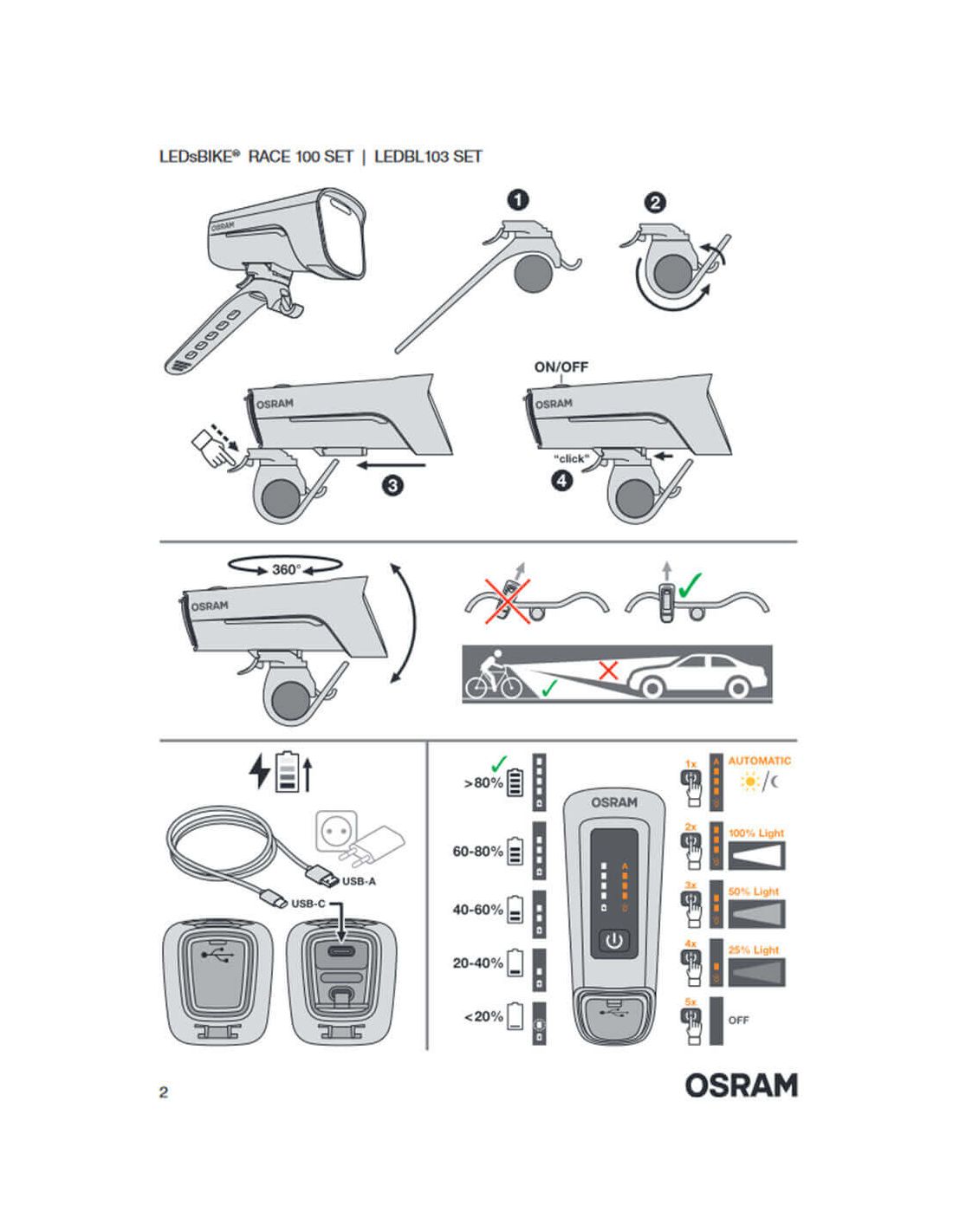 - Qualitätsgarantie: Genieße die Sicherheit einer 2-jährigen Garantie, die von OSRAM für alle LEDBL103 SET / LEDsBIKE® RACE 100 SET Fahrradlichter angeboten wird.