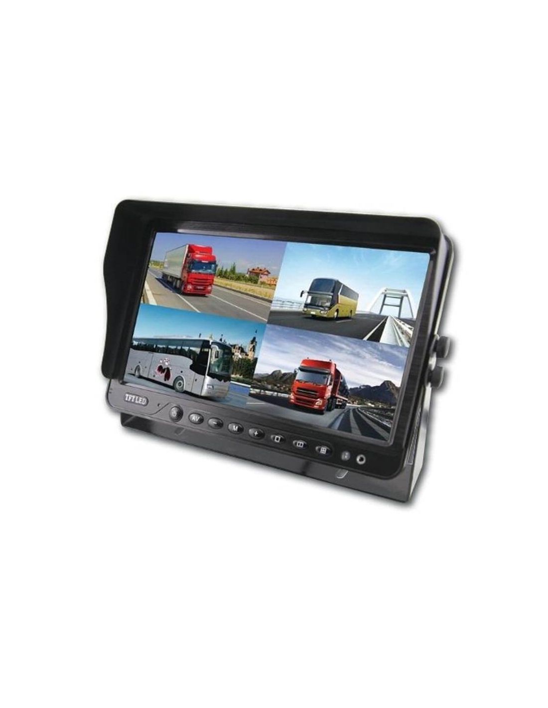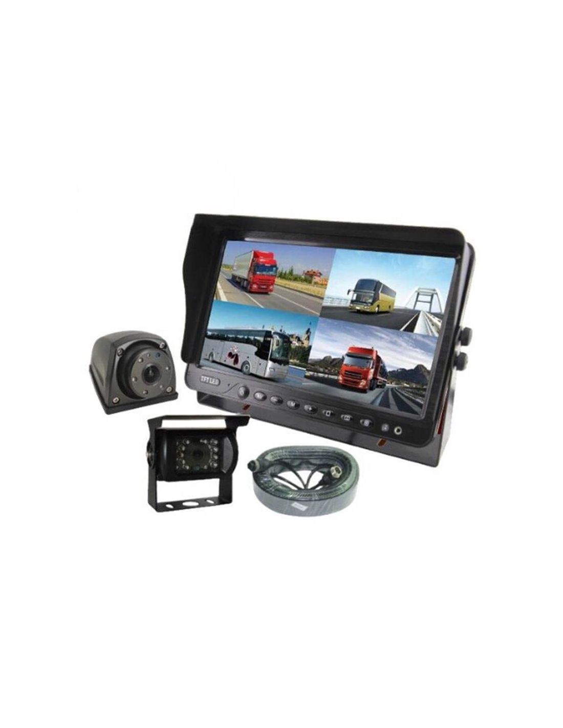7"-Kameraset mit 2 AHD-Kameras. Fahrzeug- und Personenkennung, Nachtsicht bis zu 10 m, integrierte DVR-Funktion und IP69K-Zertifizierung. Digitaler Monitor mit hochauflösendem geteiltem Bildschirm und Kapazität für 4 Kameras.