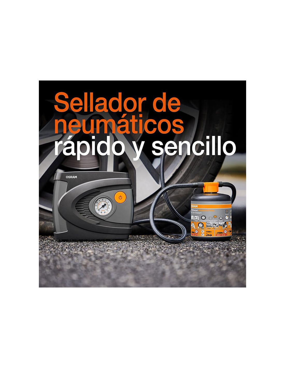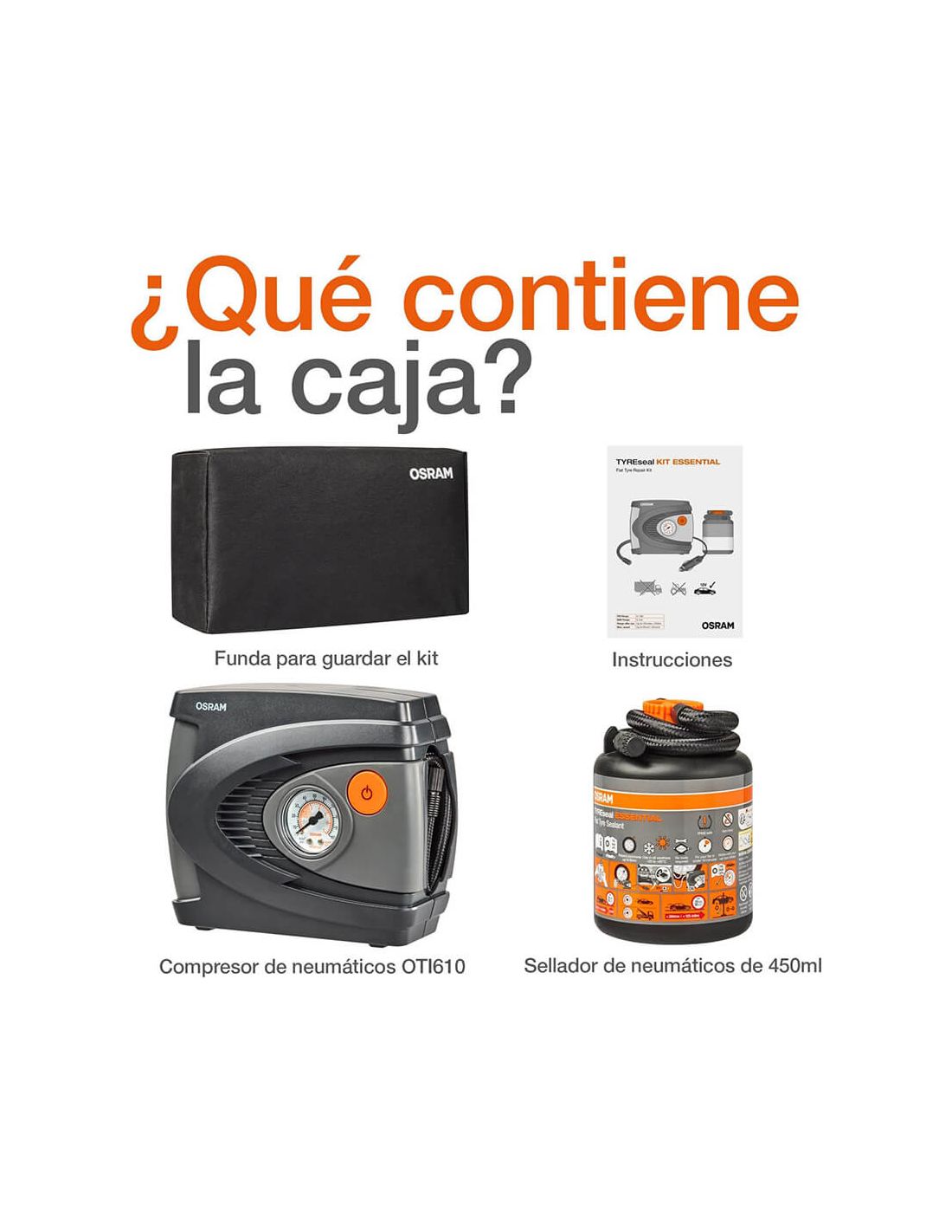Das OSRAM TYREseal ESSENTIAL KIT ist ein komplettes Reifenreparaturset mit 450 ml Dichtmittel und einem tragbaren analogen Inflator. Dichtet Pannen bis zu 6 mm und ermöglicht das Fortsetzen der Fahrt bis zu 200 km.