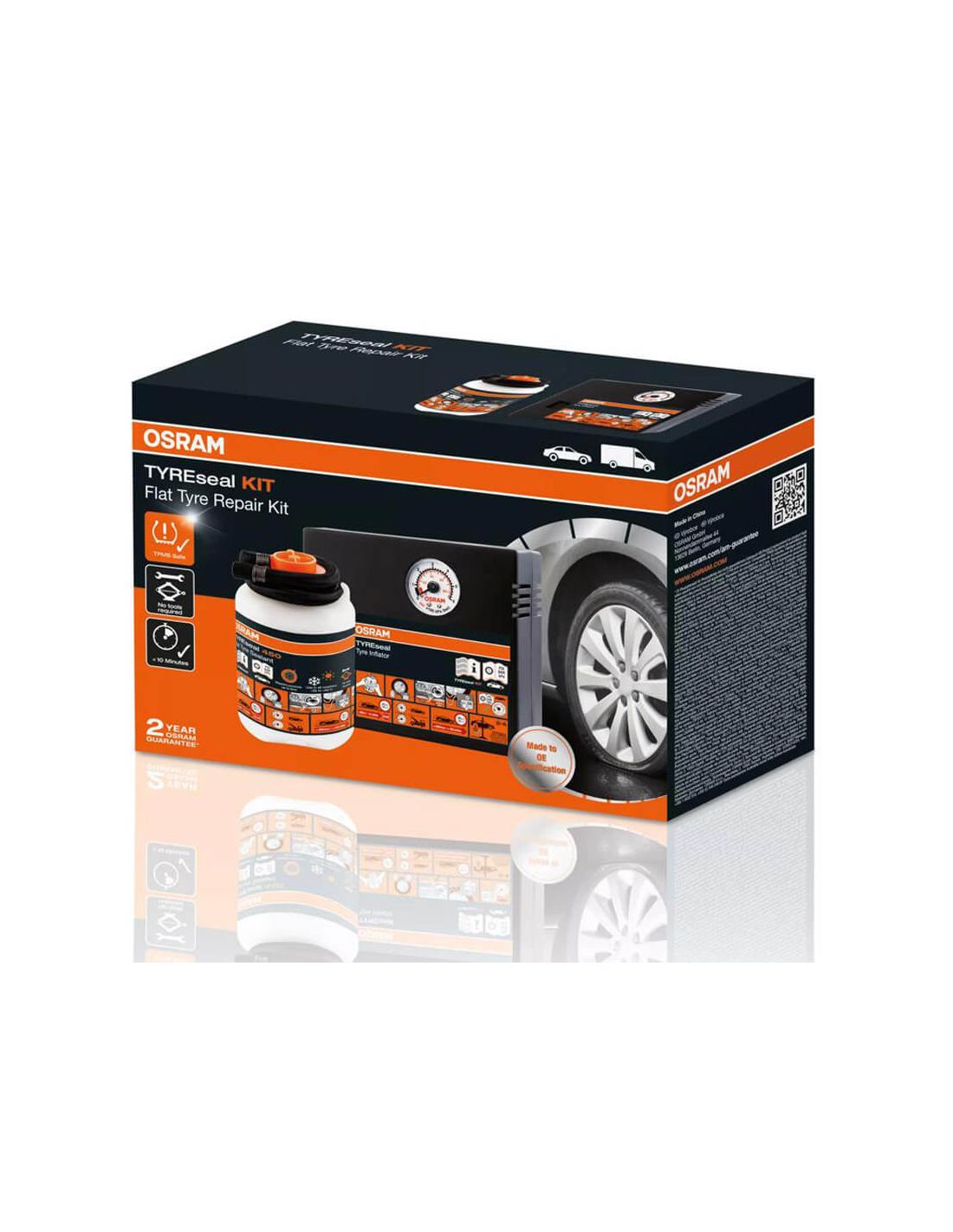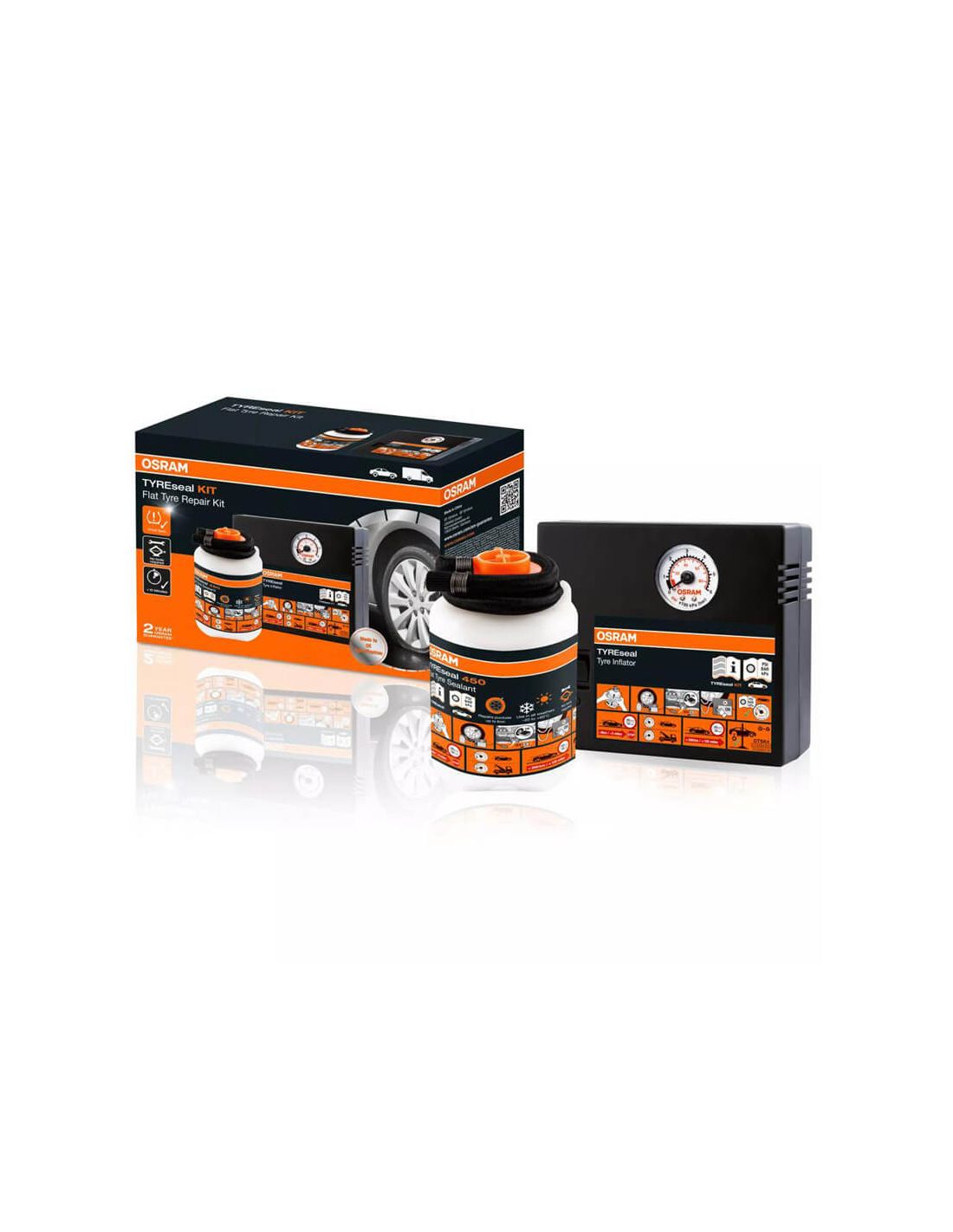 Das OSRAM TYREseal KIT ist die ideale Lösung zur Reparatur von Reifenpannen bis zu 6 mm in weniger als 10 Minuten, sodass du deine Reise ohne Werkzeuge oder Wagenheber fortsetzen kannst.