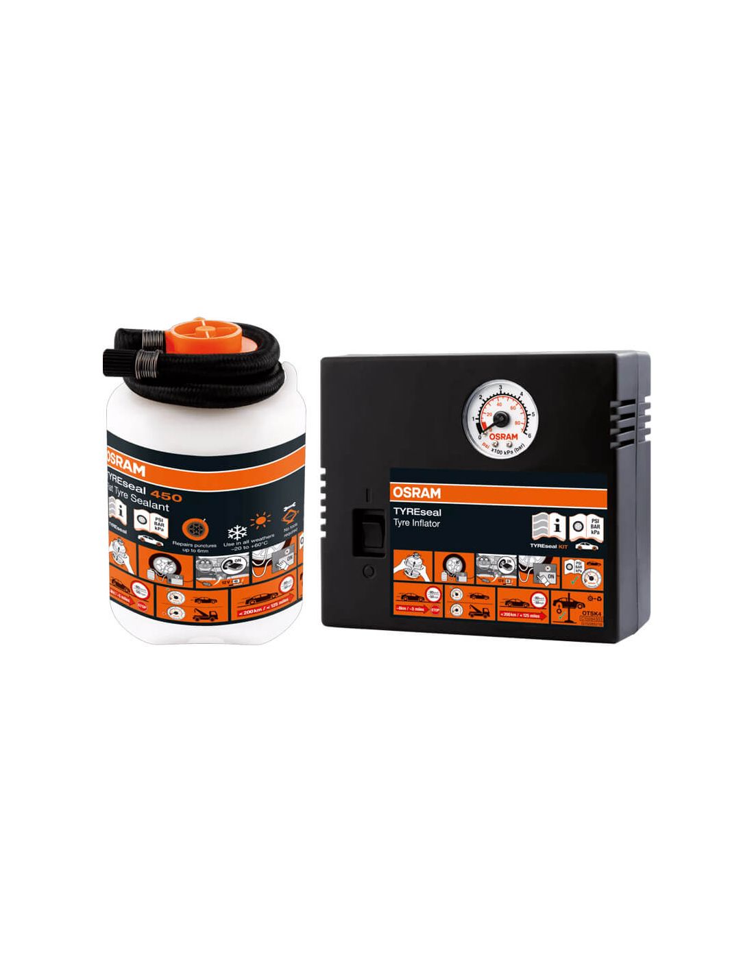 Das OSRAM TYREseal KIT ist ein komplettes Reifenreparaturset mit 450 ml Dichtmittel, Luftkompressor und Aufbewahrungshülle. Kompatibel mit TPMS, ermöglicht es, Pannen bis zu 6 mm zu dichten und die Reise bis zu 200 km fortzusetzen.