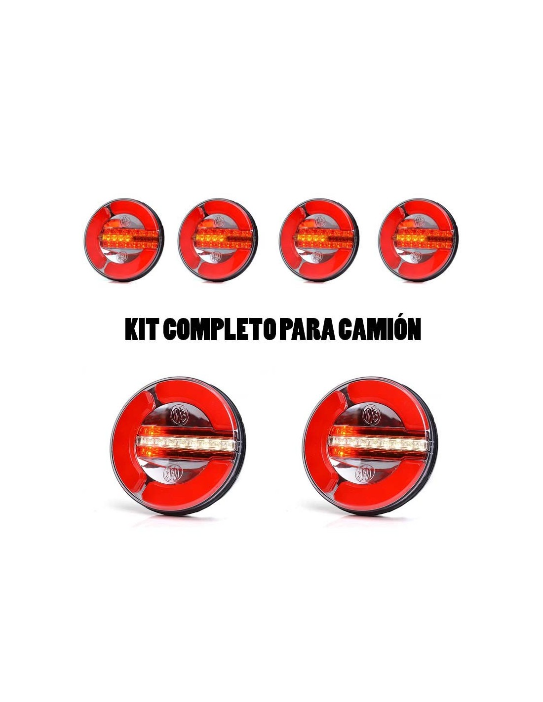 Kit mit runden LED-Rücklichtern geeignet für 12 Volt und 24 Volt, das Kit besteht aus 6 runden LED-Rücklichtern, 4 davon mit 3 Funktionen und die anderen 2 mit 3 Funktionen mit Nebellicht und 2 Hochleistungs-Chips. Diese runden LED-Rücklichter sind wasserdicht, tauchfähig und homologiert, perfekt für die Installation am Heck einer Plattform oder eines Anhängers (Der Preis bezieht sich auf das Kit, insgesamt 6 Einheiten).