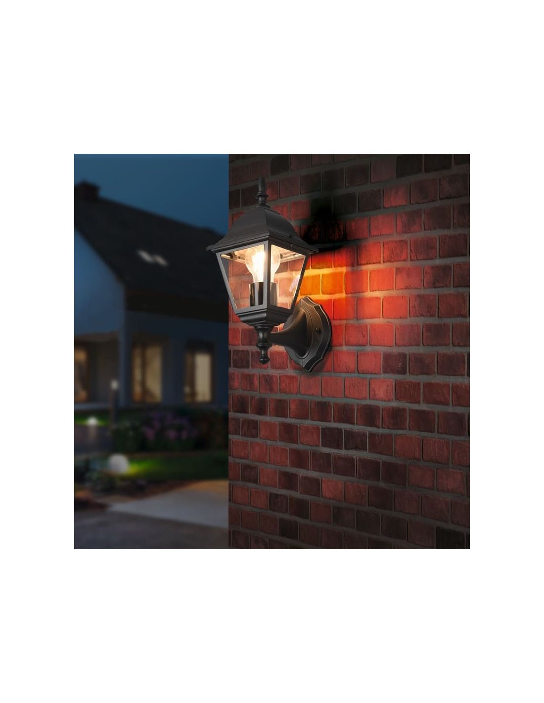 Die Außenwandleuchte LIVENZA kombiniert klassischen Stil mit Funktionalität. Mit IP44-Schutz garantiert sie Sicherheit und Eleganz in deinem Garten. Empfohlen für LED-Lampen, bietet sie Lichtqualität und eine Energieeinsparung von 80%.
