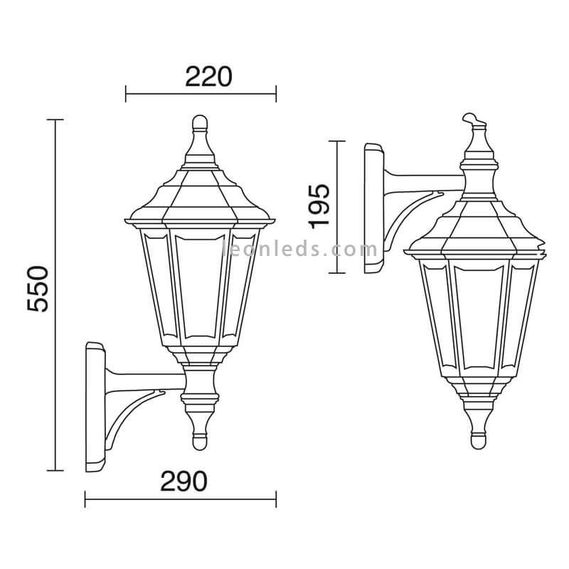 Diese Klassische Clic-clac Up-down Wandleuchte in Laternenform ist perfekt für die Installation an einer Außenwand, wir müssen nur die Lampe installieren, die uns am besten gefällt. Sie hat 2 Jahre Garantie.