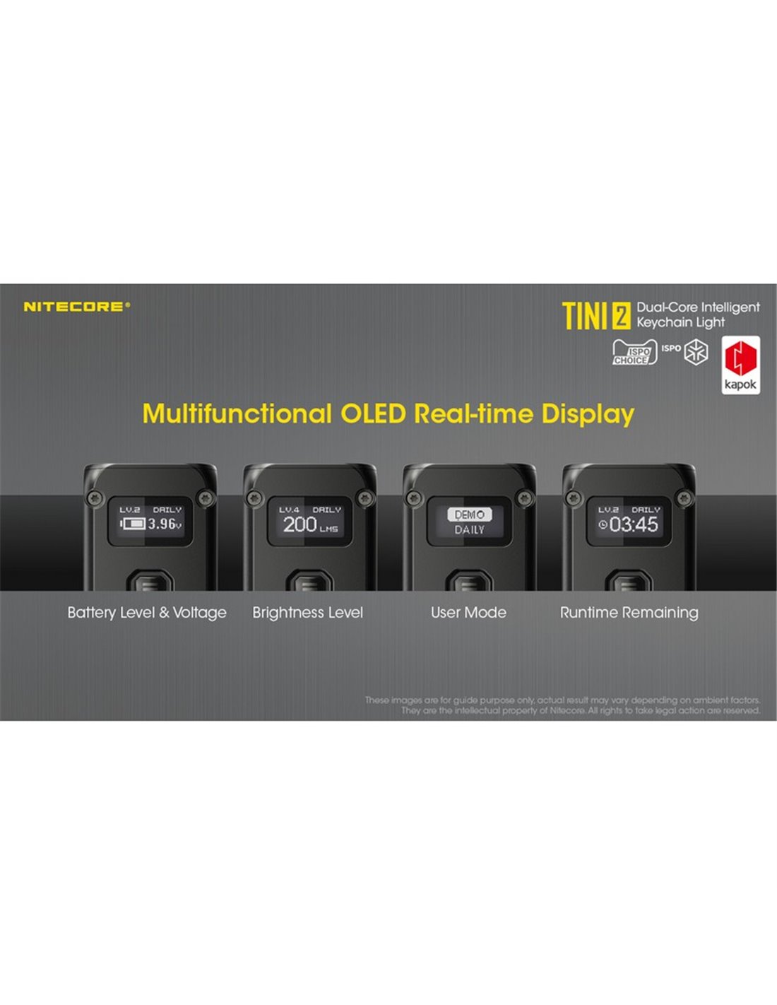 Die kleine und leichte TINI2 Lampe von NITECORE® ist die perfekte Wahl für alle, die eine kompakte, leistungsstarke und technologische Lampe benötigen. Mit einer maximalen Leistung von 500 Lumen und einer Reichweite von bis zu 89 Metern, ist diese Lampe, die als Schlüsselanhänger getragen werden kann, ideal für den täglichen Gebrauch und in Notfallsituationen. Ihr multifunktionales OLED-Display zeigt zudem Echtzeitinformationen über die Batterieleistung, die Lumen und die Betriebsdauer.